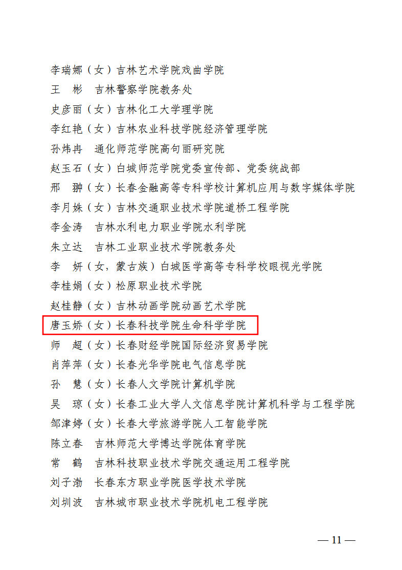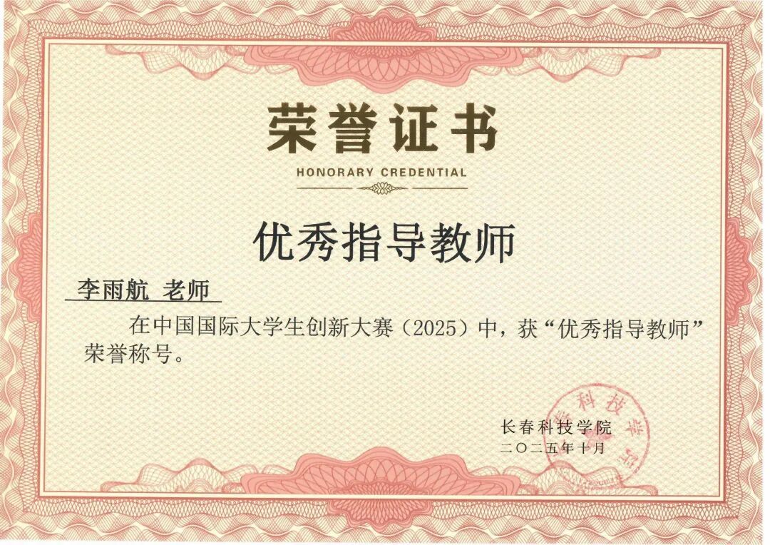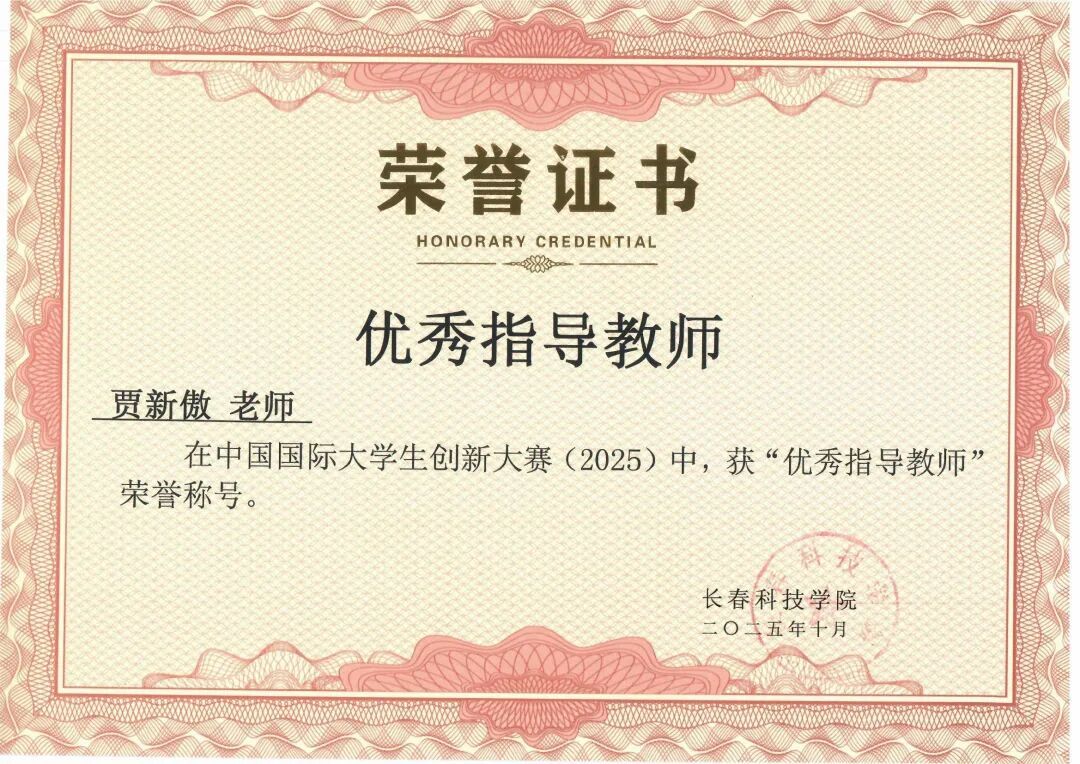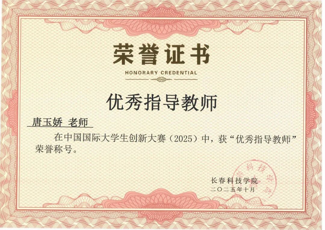 2025年,研究院教师在师德师风与综合贡献方面屡获殊荣。唐玉娇教授先后荣获 “吉林省优秀教师”、“科研、学科建设突出贡献奖”、“长科好人 最美教师暨黄大年式好老师”及“师德标兵”等多项荣誉,唐玉娇、刘畅、陈新源、杨添泽、贾新傲、李雨航老师在中国国际大学生创新大赛(2025)中,获“优秀指导教师’荣誉称号,这些荣誉的获得充分体现了研究院教师队伍的政治素养与学术担当。