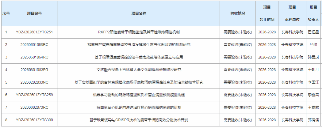 学校获批省级及以上科研项目150项,立项数量创历史新高并实现连续三年稳步增长。其中在梅花鹿种质资源保护、鹿茸深加工、医药健康等优势特色研发领域,获批吉林省科技发展计划项目9项,项目经费突破200万元,立项数量位列全省高校第29位,实现了立项数量与经费到账的“双增长”,充分体现了学校科研组织能力和科研创新活力的持续增强,为承接省级重大科研任务和推动学校科研高质量发展奠定了坚实基础。
