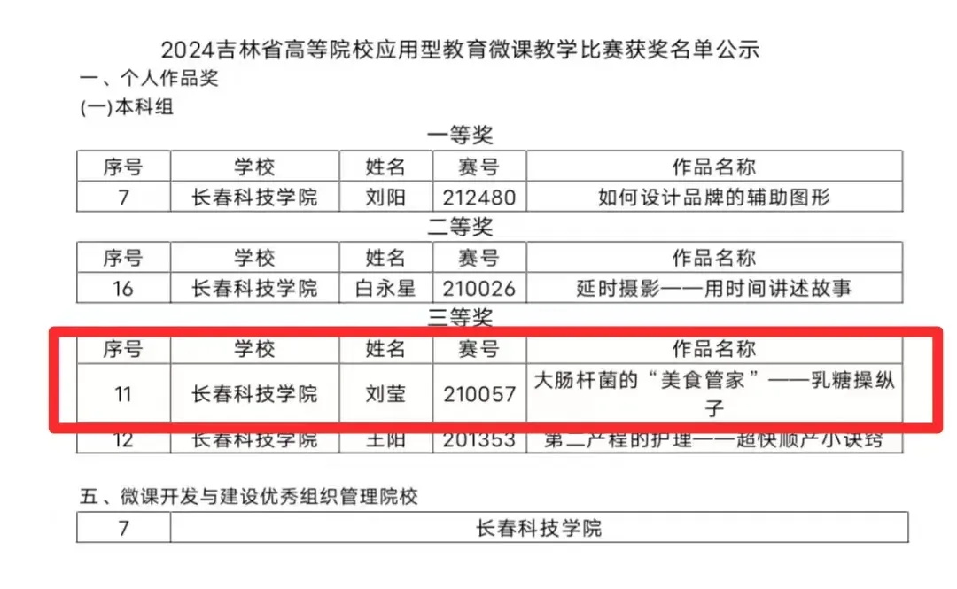 (四)刘莹教师参加吉林省高等院校应用型教育微课教学比赛,获得三等奖;