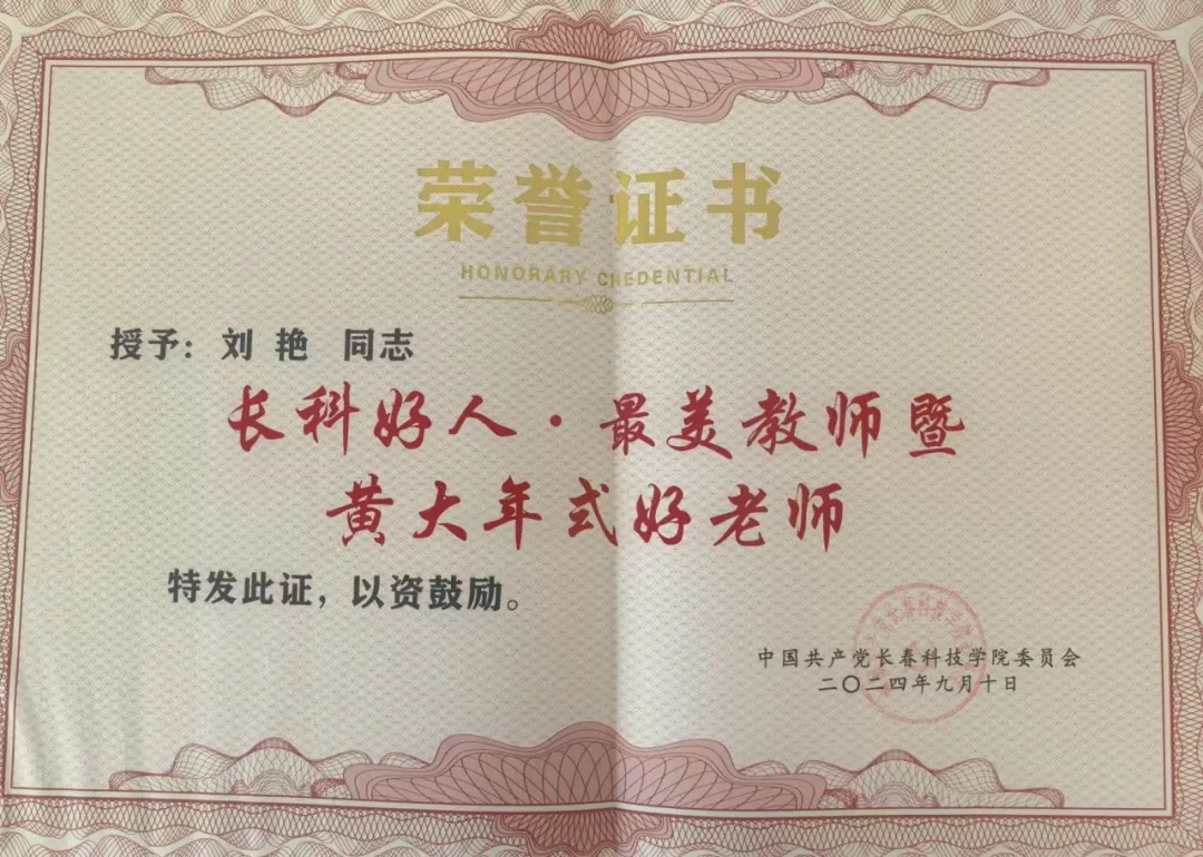 (四)刘艳教师获得长春科技学院2024年度最美教师“暨黄大年式”好老师称号;