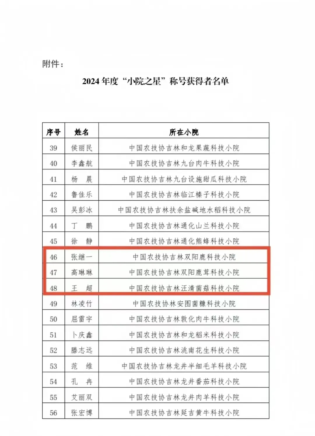 吉林江源山野菜科技小院(宋继伟副教授团队)、吉林双阳鹿科技小院(唐玉娇教授团队)、吉林省汪清菌菇科技小院(陈海燕教授团队)、吉林双阳黄牛科技小院(刘春杰教授团队)、吉林浑江灵芝科技小院(刘志洋教授团队)。