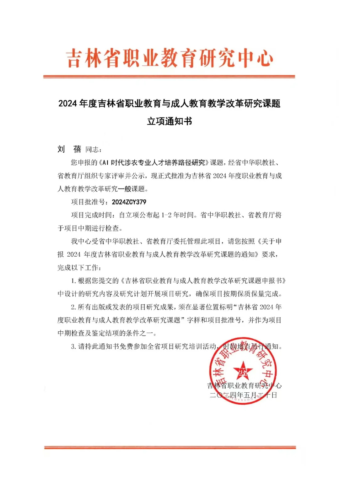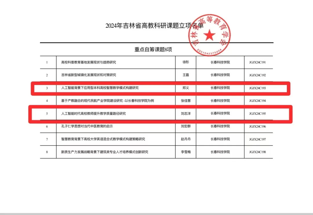 (七)郑义教师、刘志洋教师获批2024年度吉林省高教科研重点课题各1项;