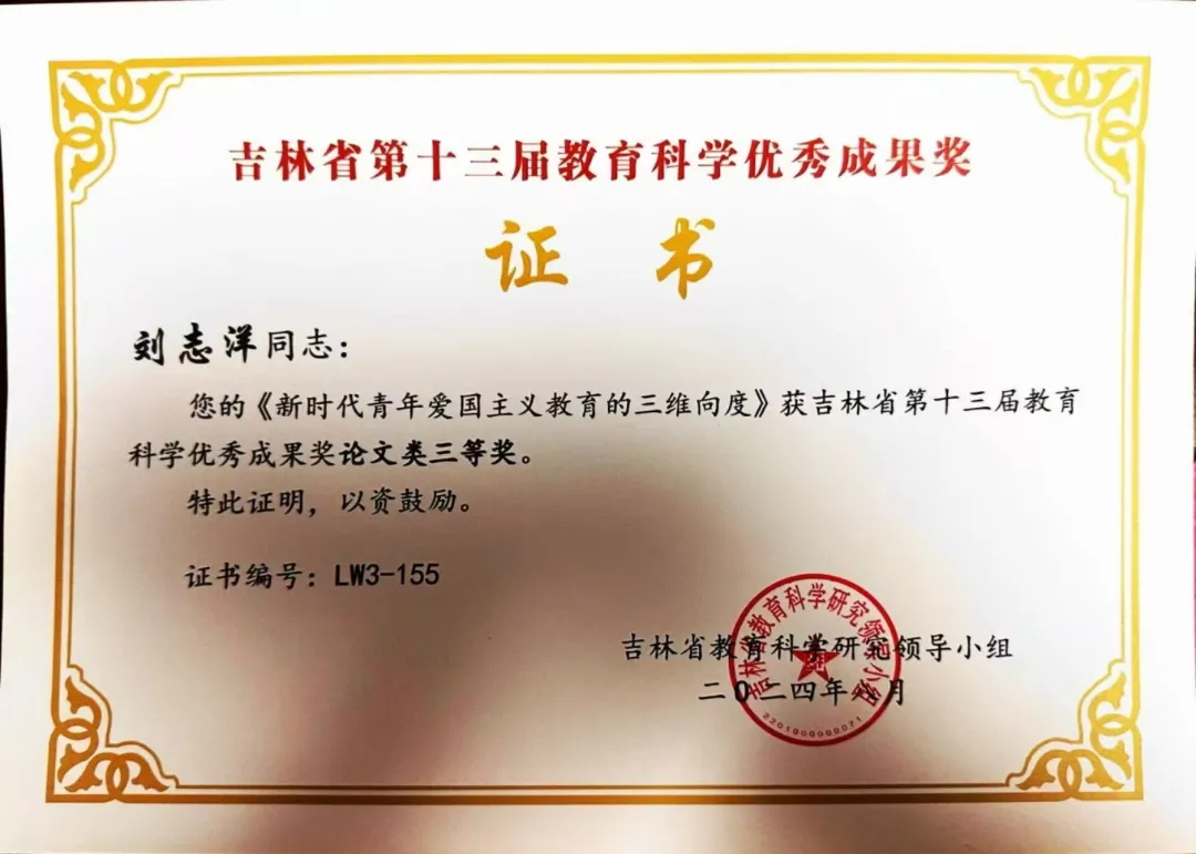 (六) 刘志洋教师荣获吉林省第十三届教育科学优秀成果奖—论文类三等奖。