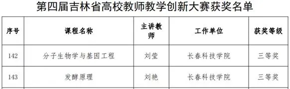 (三)孙永杰教师主讲的《食品理化检验》、刘艳教师主讲的《发酵原理》、于妍教师主讲的《动物生物学》被评为长春科技学院课程思政示范课程;