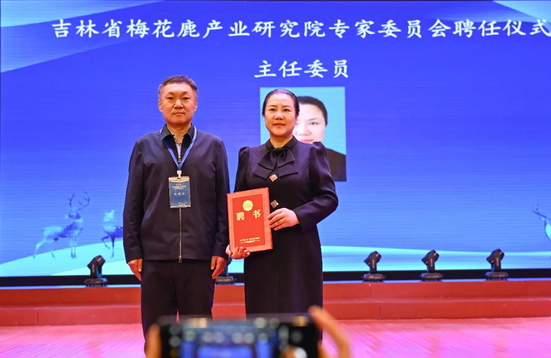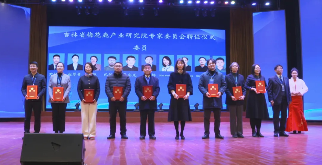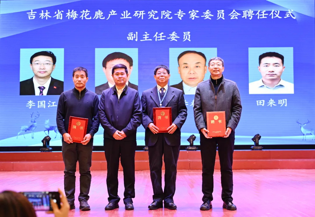 领导致辞后,举行了吉林省梅花鹿产业研究院专家委员会成员聘书颁发仪式。迟俊杰副局长、李勇副区长、全国畜牧业协会鹿业分会会长杨福合、吉林省畜牧兽医科学研究院院长侯绪森、双阳区委组织部常务副部长王国奇、双阳区畜牧业管理局局长李东旭分别为主任委员、副主任委员、委员颁发聘书。