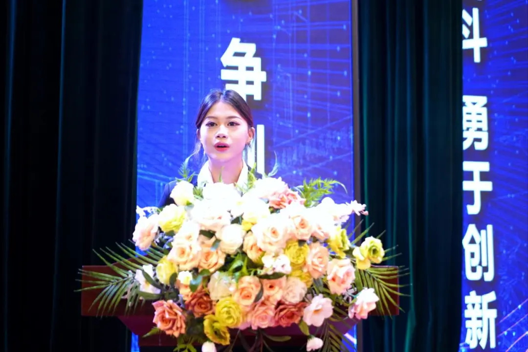 22级大数据与会计专业李汶珈做为学生代表发言,她说:实习不仅让她将理论知识与实践操作紧密结合,更让她学会了如何在团队中协作、如何面对和解决工作中的实际问题。