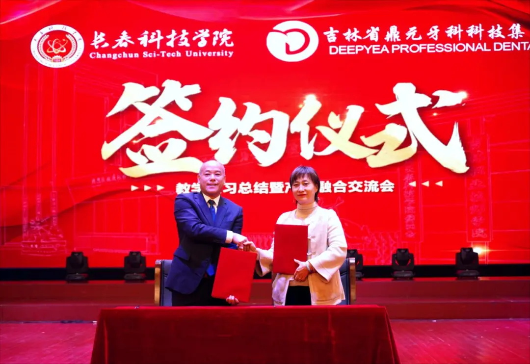 长春科技学院副校长刘晓辉与吉林省鼎元牙科科技集团邹文秀签署了产教融合合作协议