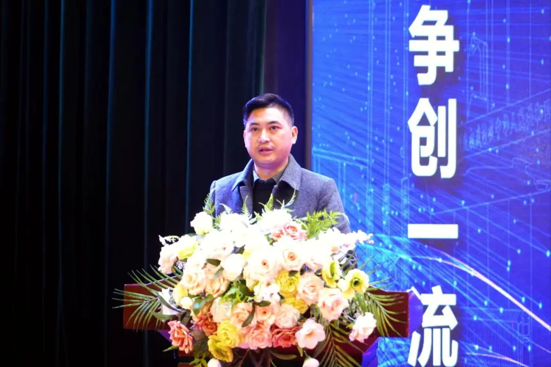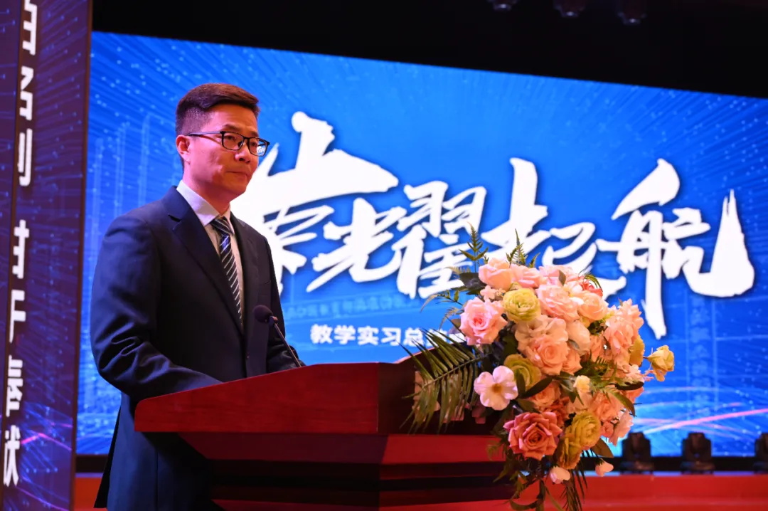 在大会发言环节,企业代表连云港慧档科技有限公司经理秦成明上台发言。他高度赞扬了参与实习的学生们所展现出的专业素养和团队协作精神,并表示企业非常欢迎这样有潜力、有干劲的年轻人加入。他同时指出,产教融合是企业与教育机构双赢的合作模式,既为企业提供了源源不断的人才支持,又为教育机构提供了实践教学和科研创新的平台。