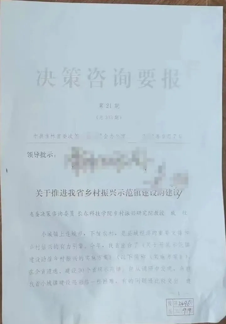 “关于推进我省乡村振兴示范镇建设的建议” 获得时任省委书记批示