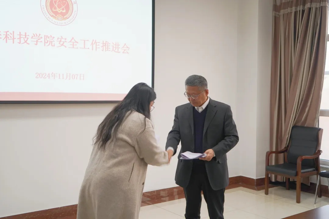 11月7日下午 ,学校在行政楼405会议室召开安全工作推进会。校长栾立明,党委副书记宋学山、高芳,党政办公室主任孙大伟,机关各部门负责人,各分院院长和党总支副书记参加会议。