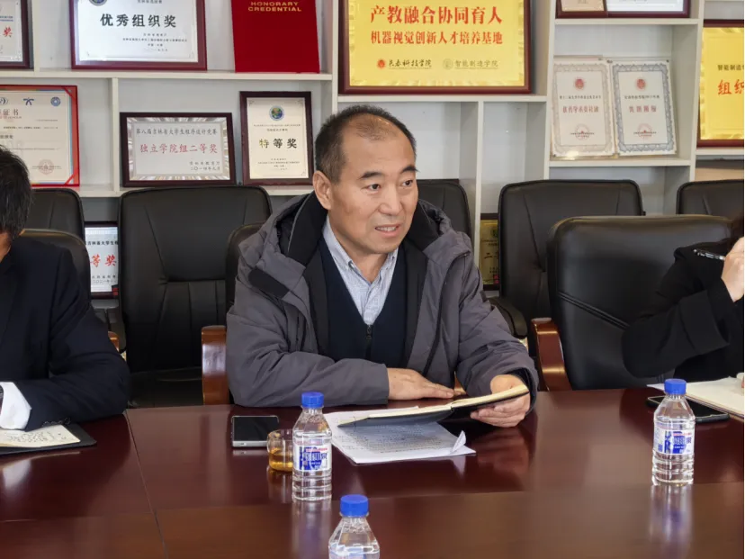 2024年10月22日上午,长春科技学院党委书记崔高嵩同志、党政办公室主任孙大伟同志、党委组织部副部长王微微同志莅临智能制造学院开展调研,学院院长、党总支书记杨继、副书记张帅及院领导班子、党总支成员参加会议。
