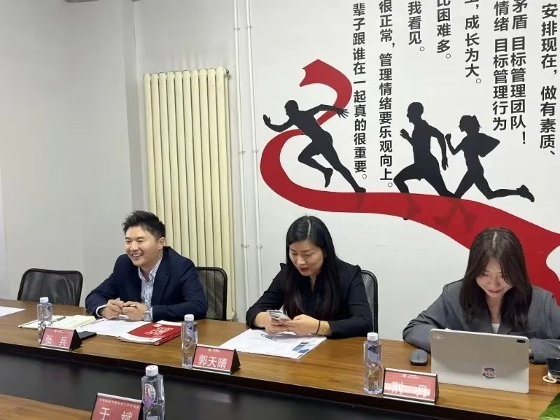 张兵总经理(左一)介绍北京世青未来教育集团发展情况