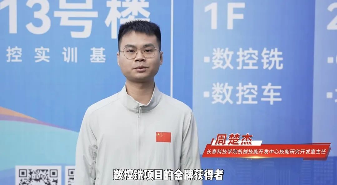 长春科技学院机械技能开发中心技能开发研究室主任周楚杰在大赛宣传片阐述技能成才重要性