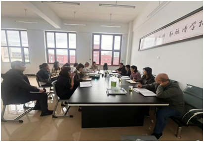 会议尹始,主任朱鲜野对学校各位领导老师的到来表示热烈欢迎。接着朱主任分别从审核评估工作进度、重点工作计划、亮点工作、存在问题与整改措施以及困惑求解进行汇报。主任朱鲜野表示,基础部高度重视评估工作,扎实推进“一把手”工程,在学校要求的时间节点内逐项完成了评估相关工作。在谈到重点工作时,朱主任强调,基础部始终坚持以立德树人为根本,以队伍建设为重点,以课程建设为核心统领指导各项工作,目前,基础部正以“教师成长营”活动为切入点,开展系列活动。接下来,朱鲜野汇报了自评自建中存在问题及相应的整改措施。