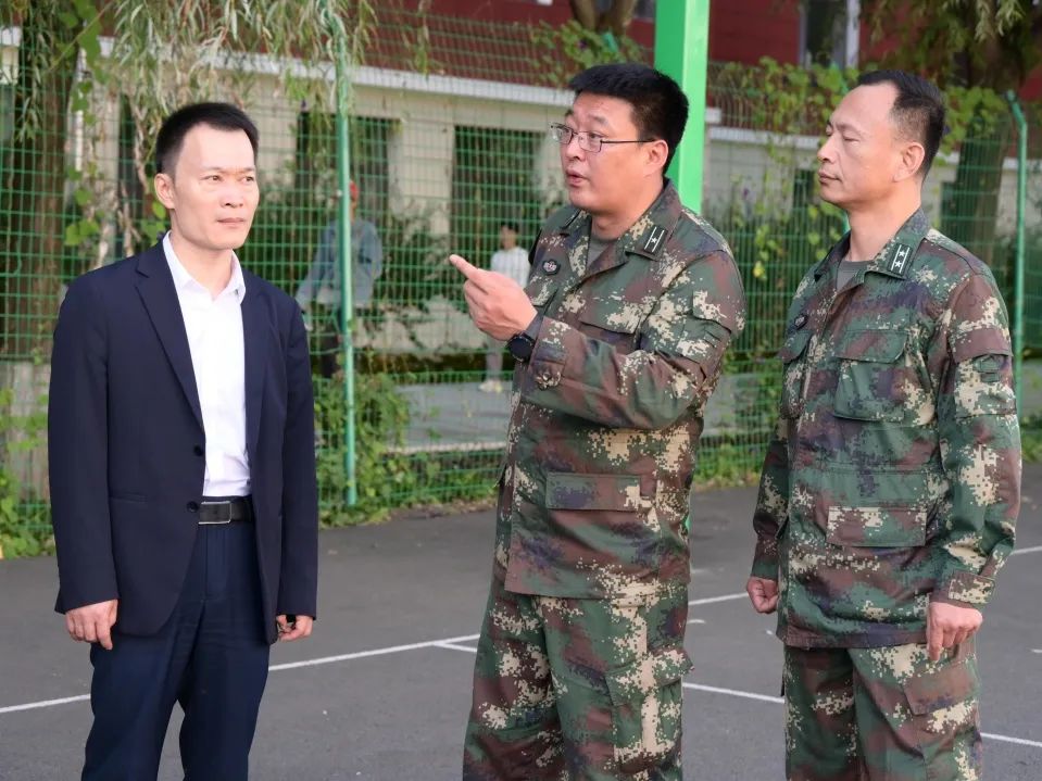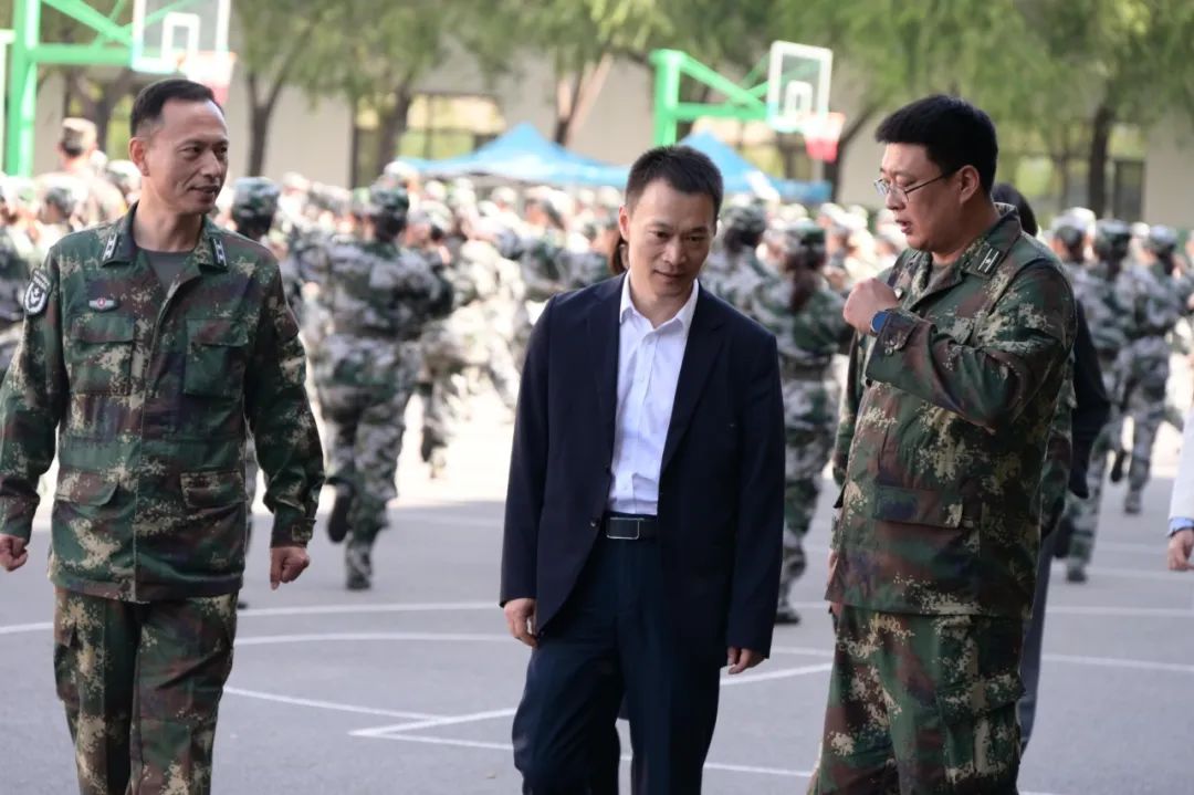 党委副书记宋学山一行观看了训练中的部分方队,向承训教官和新生辅导员详细了解了军训各项训练科目、训练进度以及参训学生的身体、心理、生活相关情况,对同学们刻苦训练给予充分肯定,并对承训教官和配合军训工作的辅导员表达了诚挚的慰问。他叮嘱承训教官、辅导员要按纲施训、科学带训,实时关注学生的健康状况,并希望大家齐心协力,结合预备役制教育,进一步做好学生的国防教育工作。希望同学们珍惜军训时光,发扬人民军队优良传统,磨练意志,培养良好的校风、学风,将更大的热情投入到未来的大学生活和学习中。