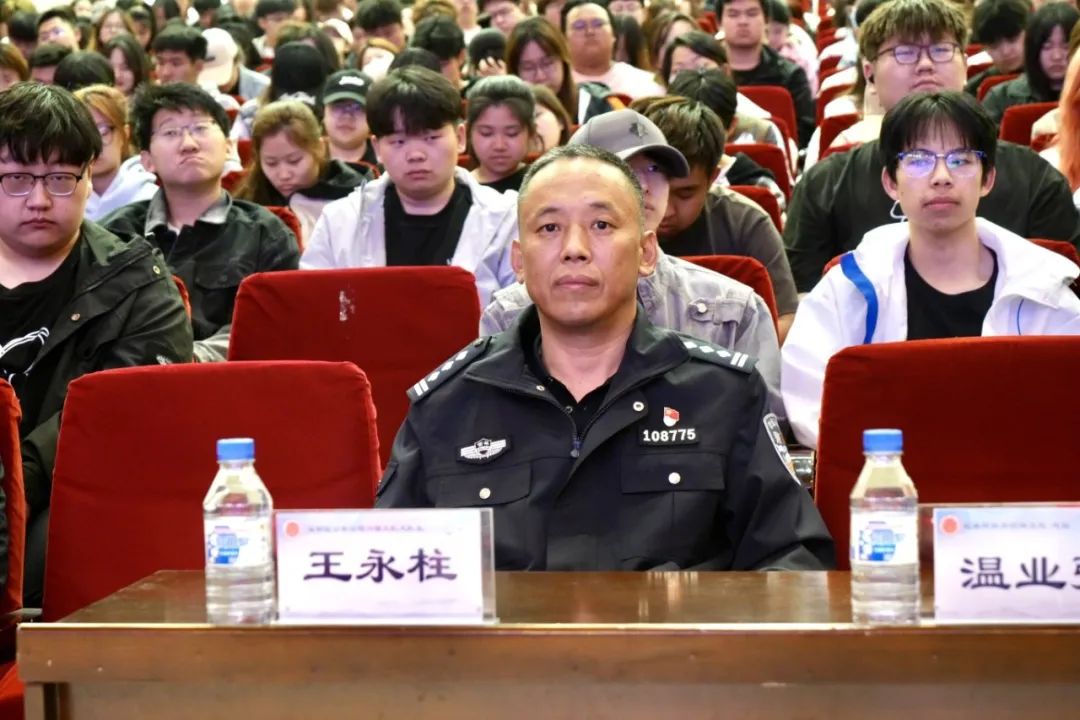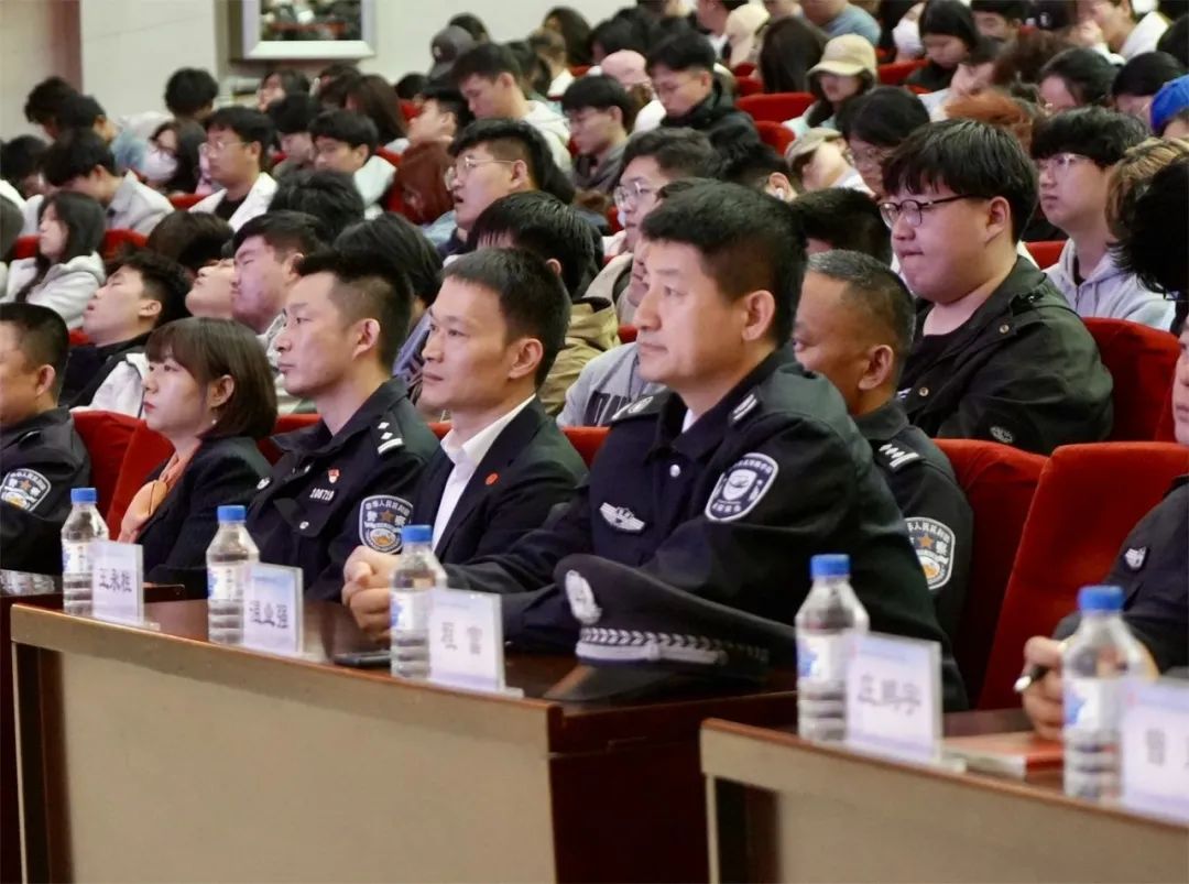 为切实做好校园安全教育工作,提高师生识骗、防骗意识和能力,保护师生人身和财产安全,预防和减少电信诈骗案件的发生,5月23日下午,我校邀请双阳区公安分局内保大队大队长王永柱、反电诈中心主任郭未来、内保大队民警姜相哲、反电诈中心民警庄鹏宇以及北山路派出所民警李鸣凡,开展“警校联手反诈 共筑平安校园”主题教育活动。校党委副书记宋学山出席本次活动,保卫处处长温业强、团委副书记孙旭、保卫处副处长程富以及各学院全体师生一千余人参加本次活动。