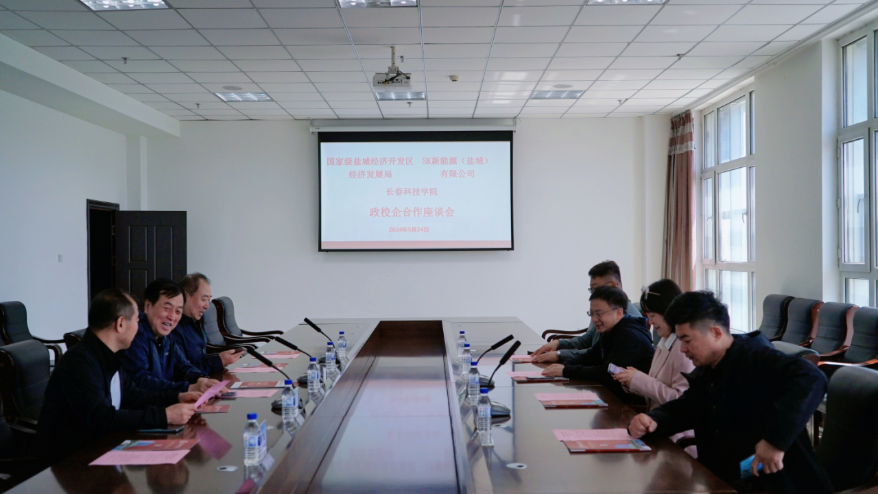 学校实施“走出去、请进来”的战略,积极开展访企拓岗促实习就业活动,主动邀请地方政府和优质企业进校园深化校企合作、产教融合。5月24日上午,我校与国家级盐城经济开发区经济发展局、SK新能源(盐城)有限公司,在行政楼403会议室举行政校企合作座谈会。国家级盐城经济开发区经济发展局党组成员陈斌、SK新能源(盐城)有限公司人力资源部部长刘悦、人力资源部招聘经理高桂灏、人力资源部招聘主管夏海鹏,长春科技学院副校长张代治、就业工作处处长于斌、创新创业学院、智能制造学院院长杨继、就业工作处校企合作办公室主任肖东飞参加会议。会议由就业工作处处长于斌主持。