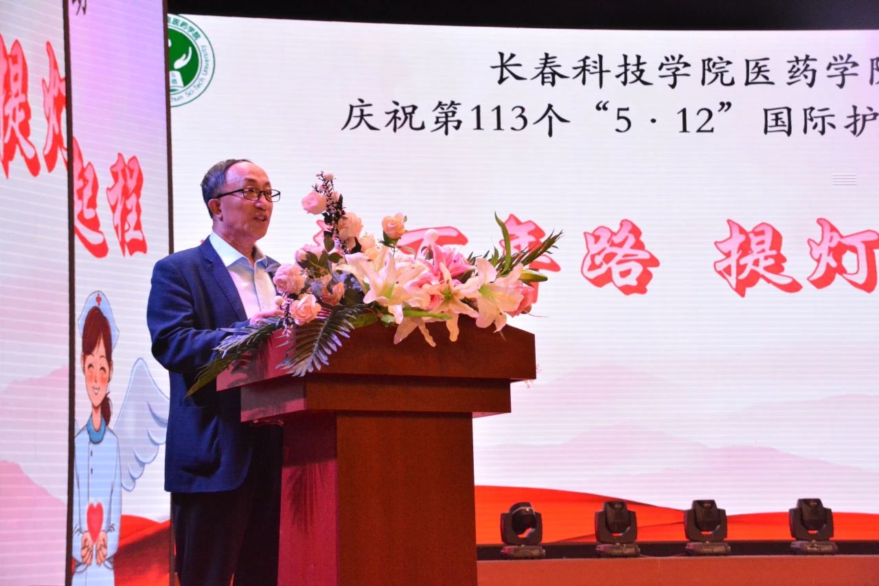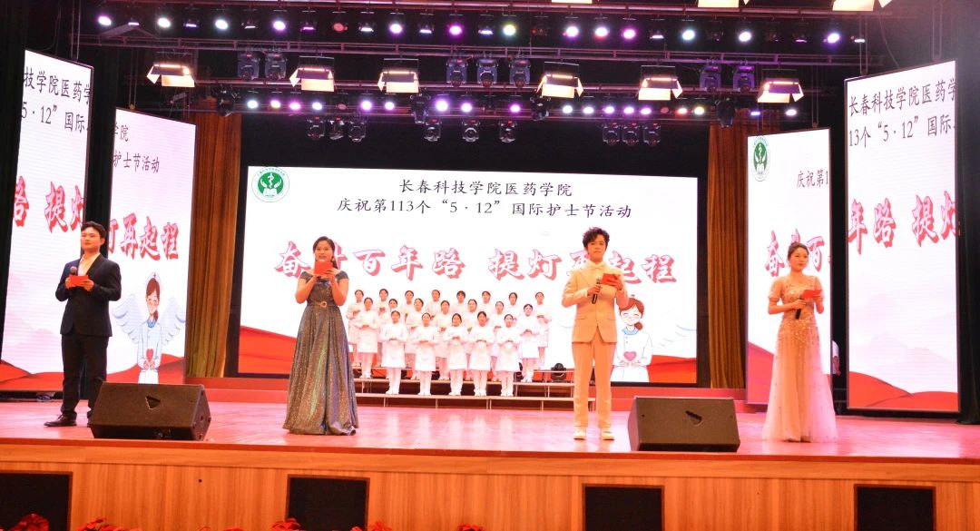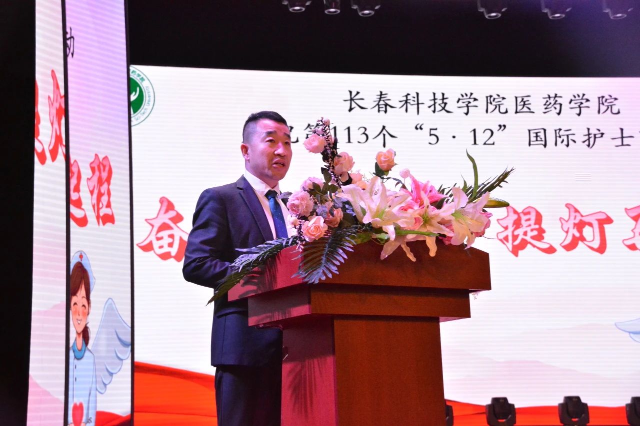 为庆祝第113个“5·12”国际护士节,继承和弘扬南丁格尔“不畏艰险、甘于奉献、救死扶伤、勇于献身”的人道主义精神,展现白衣天使风采。5月9日下午2点,医药学院在东鳌国际会议中心举办“5·12”国际护士节庆祝大会——“奋斗百年路,提灯再启程”。长春科技学院校长栾立明,党委书记林佳彬,党委副书记宋学山,副校长高杰,党委副书记高芳,党委常委、党政办公室主任孙大伟,集团文旅医养事业部总经理李冬梅,长春科技学院附属医院院长吴毓章,医药学院院长闫立安,副书记陈树森,副院长陈新新,特邀嘉宾双阳区医院护理部主任孙希娜,副主任李洪宇,双阳区中医院护理部主任冯晓敏,学院全体教师及护理学专业学生共计1000余人参加庆祝大会,会议由党总支副书记陈树森主持。