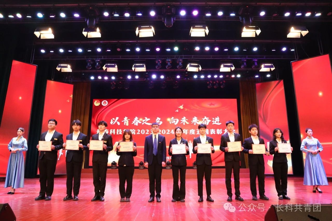 会上宣读了2023-2024学年学校共青团各项工作的表彰文件。与会领导为受到表彰的先进集体和优秀个人颁发了奖牌和荣誉证书。