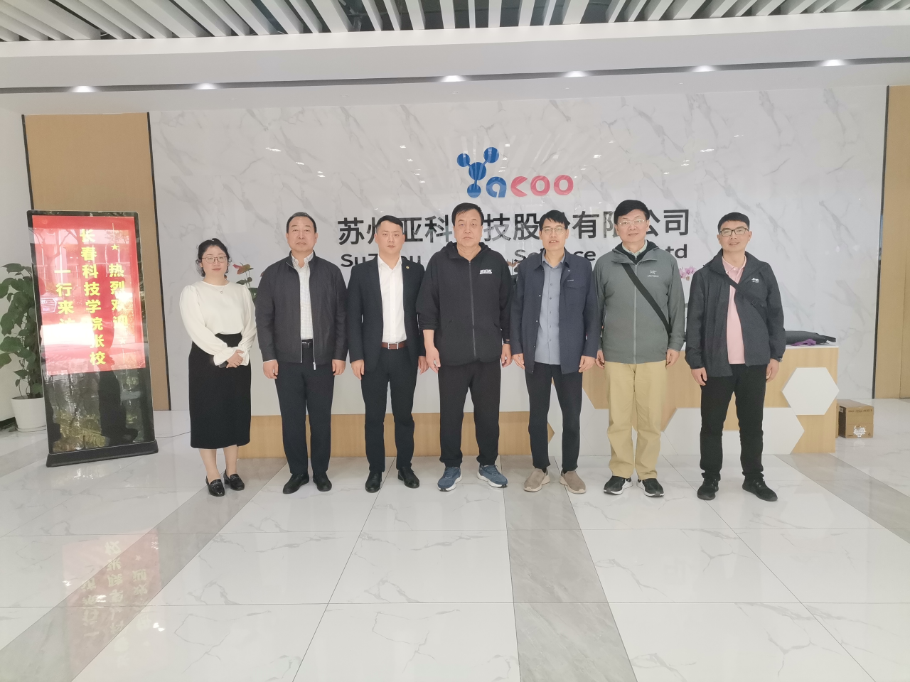 4月23日,副校长张代治一行5人,在苏州亚科科技股份有限公司总经理袁永坤、人事总监赵成成等陪同张代治副校长一行参观了苏州亚科科技股份有限公司企业展馆、亚科股份未来科技实验室、举行了校企合作座谈会并合影留念。