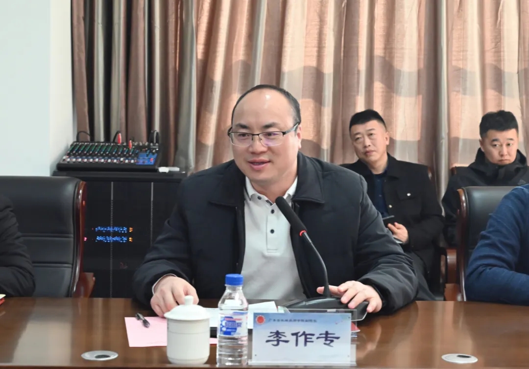 随后,广东省机械技师学院副院长李作专向大家介绍了周楚杰和杨登辉在学院的成长历程,长春科技学院副校长刘洋介绍了两校近些年合作情况。李院长在会上表达了对周楚杰、杨登辉未来发展的殷切期许,同时也表示希望持续推动两校未来更深入的合作。