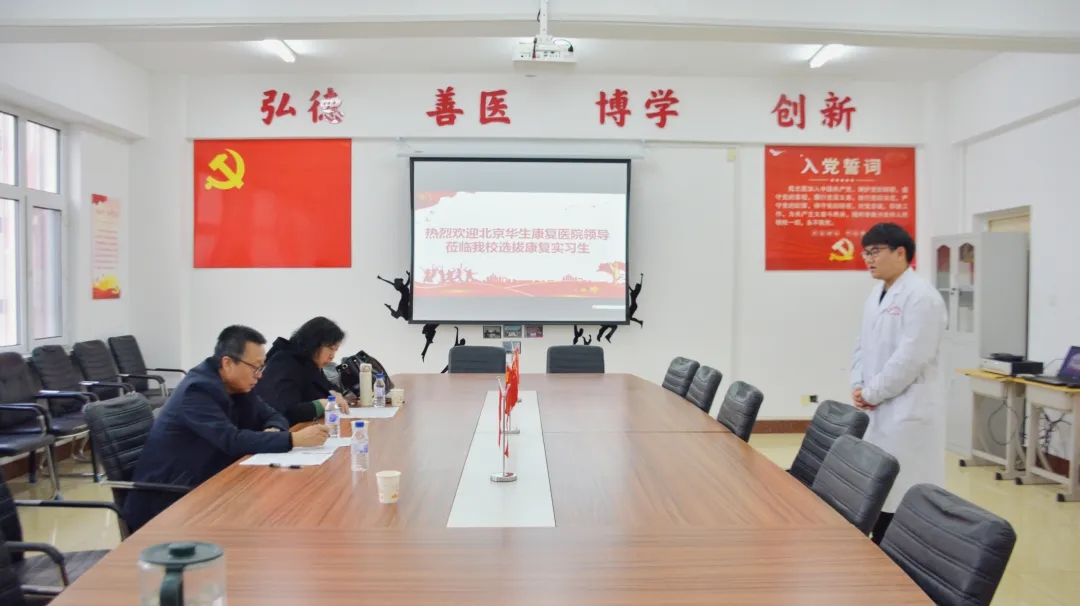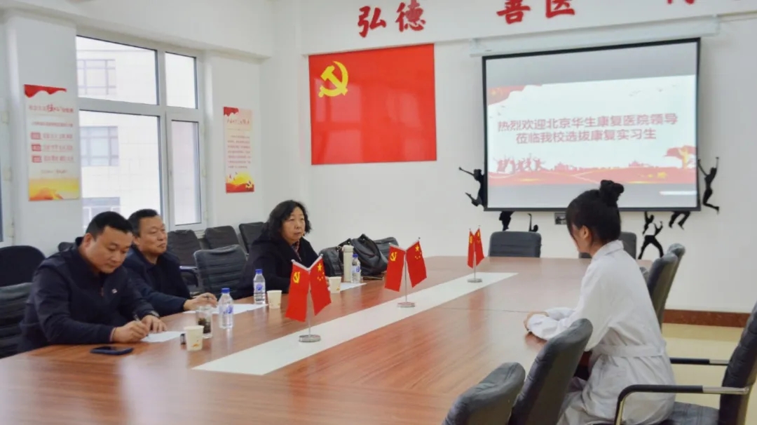 4月1日,北京华生康复医院有限公司总经理张熙凯、副院长桑德春、党政办公室主任郝方方,康复治疗科主任刘璇,一行四人应邀来到学校进行实习生选拔工作。长春科技学院董事长张电达、校长栾立明、党委书记林佳彬、副校长张代治、就业工作处校企合作办公室主任肖东飞、医药学院院长闫立安、副书记陈树森、康复治疗学专业主任胡辉热情接待并一行。