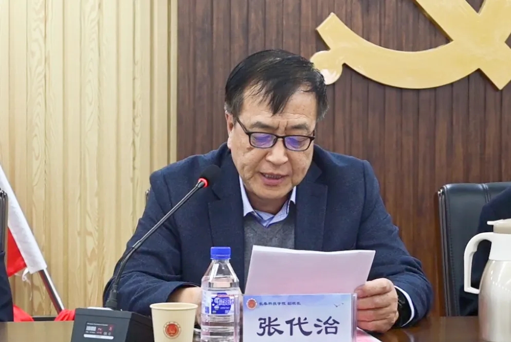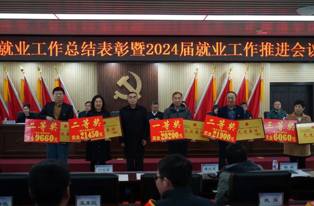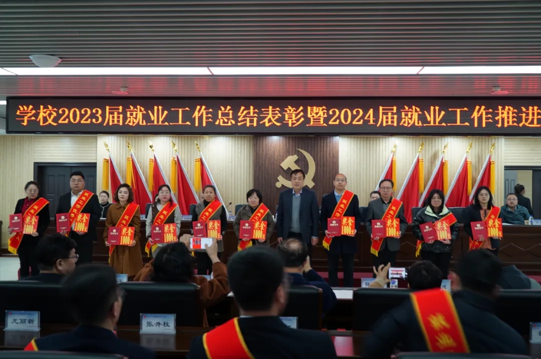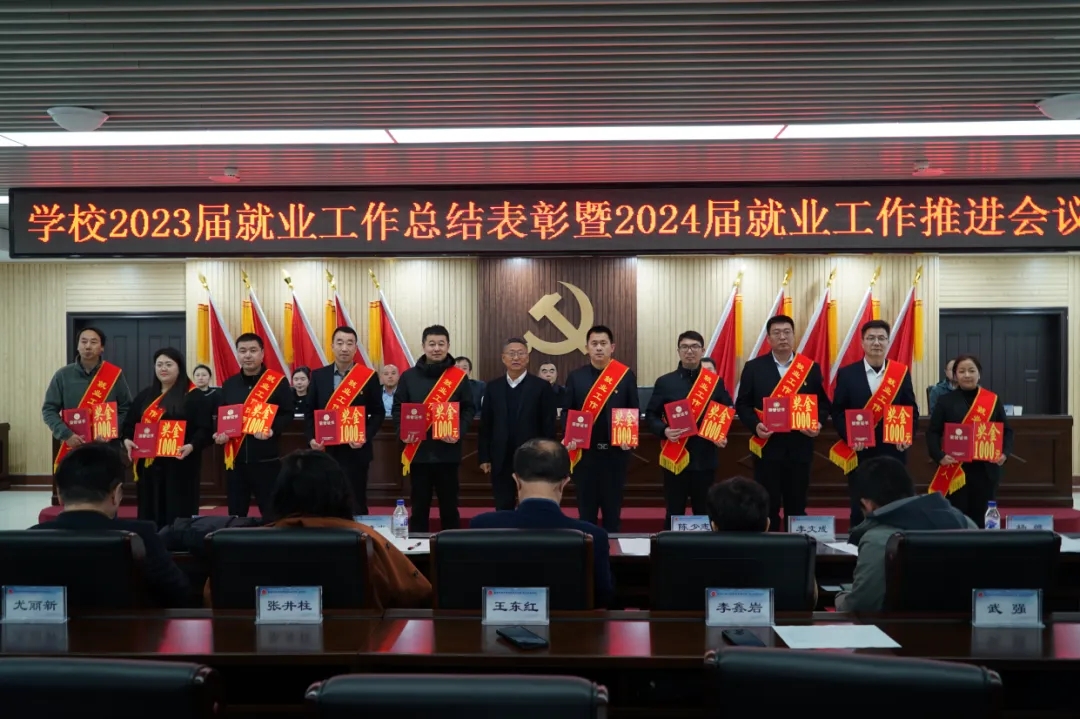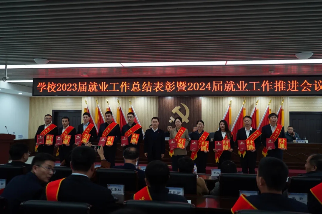 副校长张代治宣读了《关于表彰奖励2023年度“就业工作先进集体”、“就业工作达标单位”和“就业工作优秀个人”的决定》。随后董事长张电达和学校领导为受表彰奖励的就业优秀个人代表和先进集体进行了颁奖。