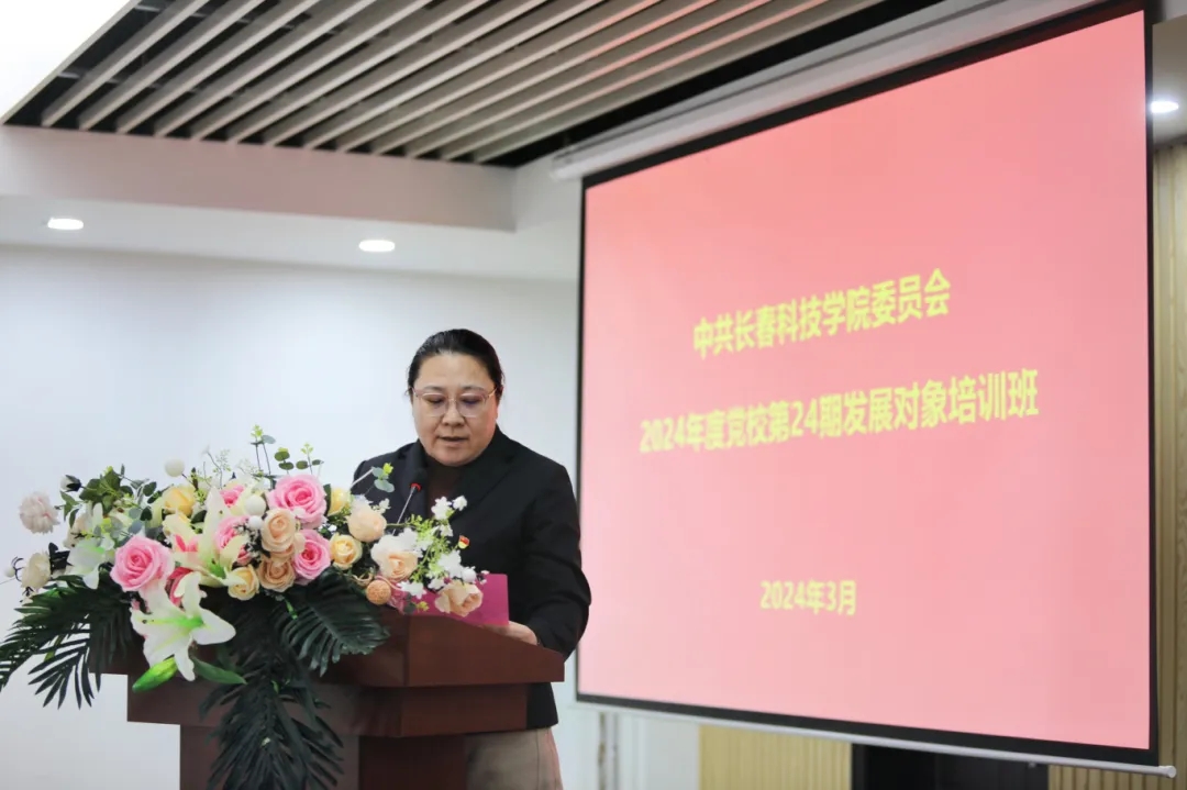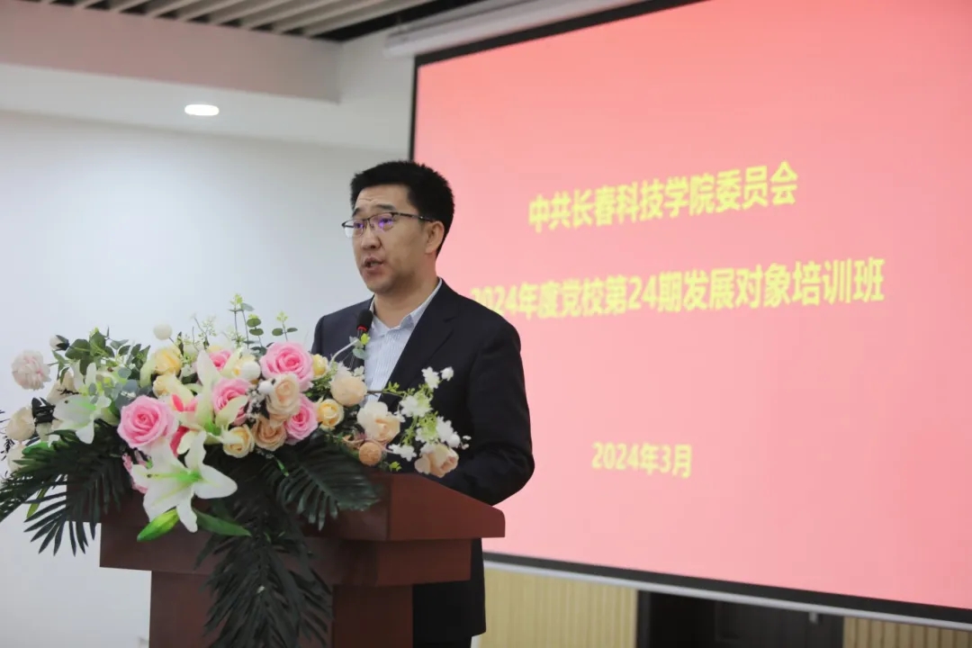 3月26日下午,长春科技学院党委党校发展对象培训班开班典礼在行政楼411会议室举行。党委书记林佳彬,副校长张代治,党委副书记宋学山,副校长、组织部部长高杰,校长助理刘立东,党委副书记、宣传统战部部长高芳,党政办公室主任孙大伟,各分院党总支副书记、教工支部书记、学生支部书记和全体培训学员共计300余人参加本次开班典礼。副校长、组织部部长高杰主持典礼。