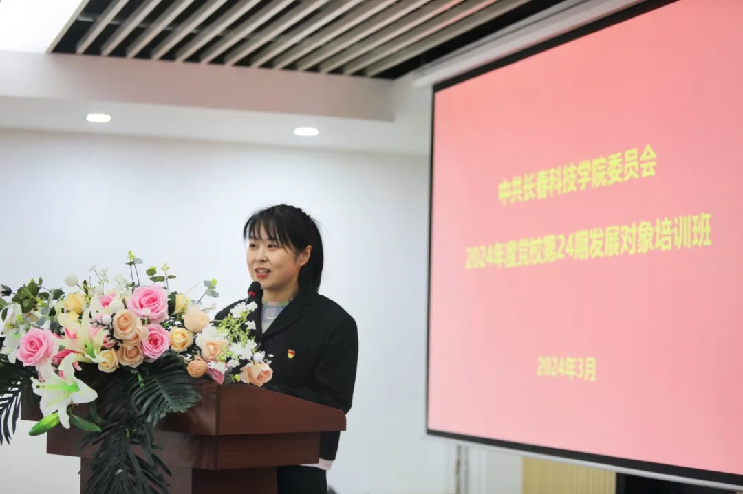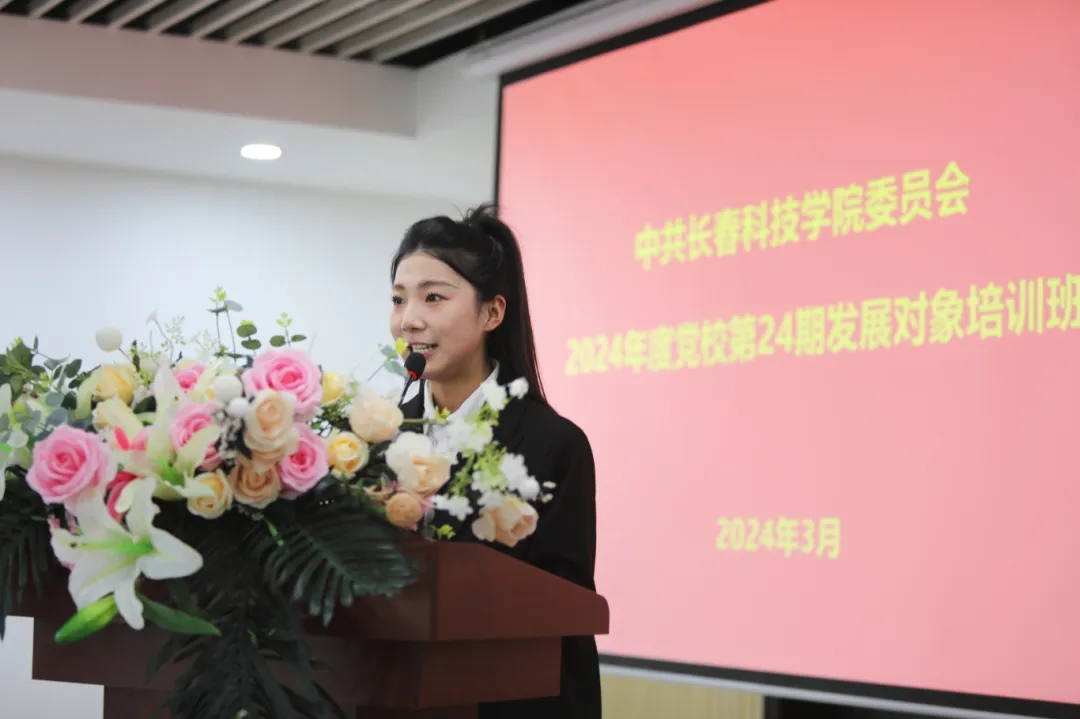 智能制造学院学生支部书记赵雪代表全校师生党员发言,她希望每位发展对象能在此次培训中提高思想认识、端正学习态度,以此次培训为一次锤炼党性修养、提升理论能力的契机,不断提高自身本领,加强自我修养,让中华民族的伟大复兴在我们的奋斗中梦想成真!