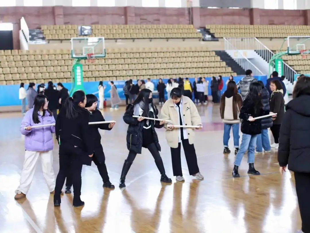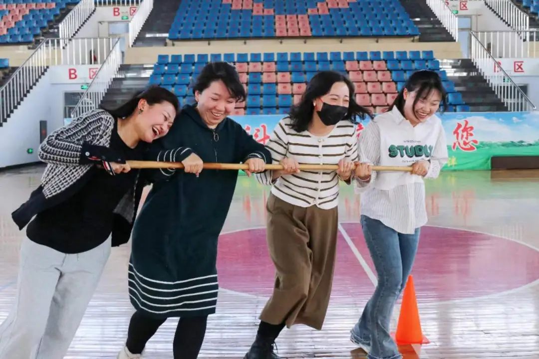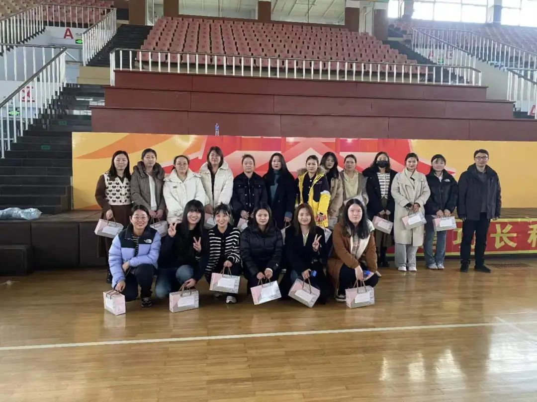 女职工代表座谈会议结束后,校领导和全体人员一起到学校体育馆,与学校其他女职工共同参加体育娱乐活动。本次活动主题为“运动巾帼,建功长科”,面向学校全体女职工,由长春科技学院工会委员会主办,军事体育部承办,校团委协办。活动内容贴合女职工特点,趣味性浓厚。活动项目分集体项目和个人项目,集体项目包括珠行万里、筷传纸杯,个人项目包括趣味穿裤子、气球运纸杯、风火轮。奖项设置实用亲民,所有参加比赛项目的人员均能获得节日纪念品一份。各项活动如火如荼的进行,欢声笑语、加油喝彩声充斥着整个体育馆。比赛结束后,由校工会主席、副主席及分工会主席根据比赛成绩为获奖集体及个人依次颁奖,并合影留念。每个人都收获满满,脸上洋溢着幸福的笑容。本次体育娱乐活动在全体女职工欢快、幸福的氛围中圆满结束。