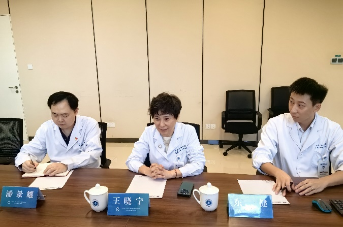 瑞金海南医院副院长王晓宁代表医院对董事长一行的到访表示热烈欢迎,她简要介绍医院的发展历程和医院在医疗、教学、科研方面取得的成就,并且将其他学校在院实习与就业情况做了经验交流,并传递了对医院建设的远景规划和长足信心。