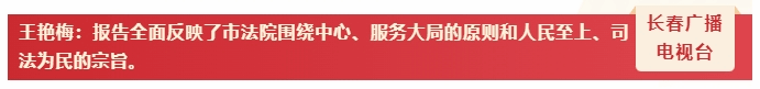 “今年的报告数据详实,有力量、有温度,全面反映了市法院围绕中心、服务大局原则和人民至上、司法为民宗旨,切实扛起了人民法院的责任担当。尤其在优化营商环境、知识产权保护、金融风险化解等方面做了大量的实际工作。为民服务用心,聚焦民生司法保障,妥善审结了一批事关民生和社会稳定的案件,大力弘扬社会主义核心价值观,很贴民心。” 在认真听取了长春市中级人民法院的工作报告后,王艳梅认为。