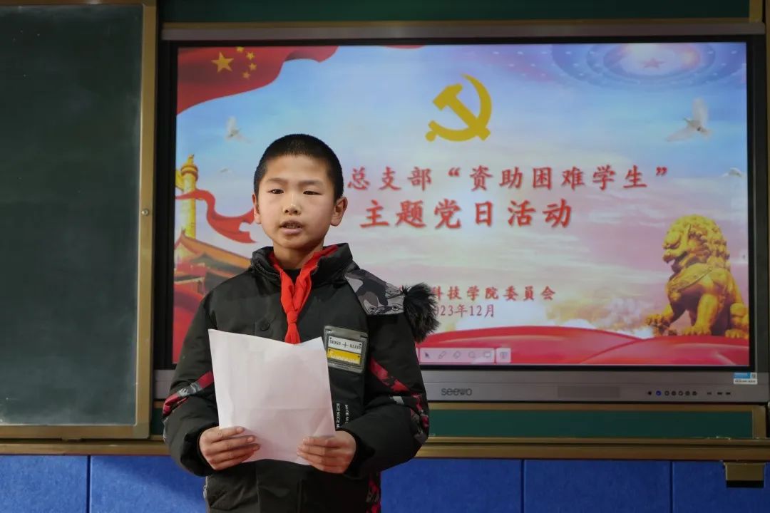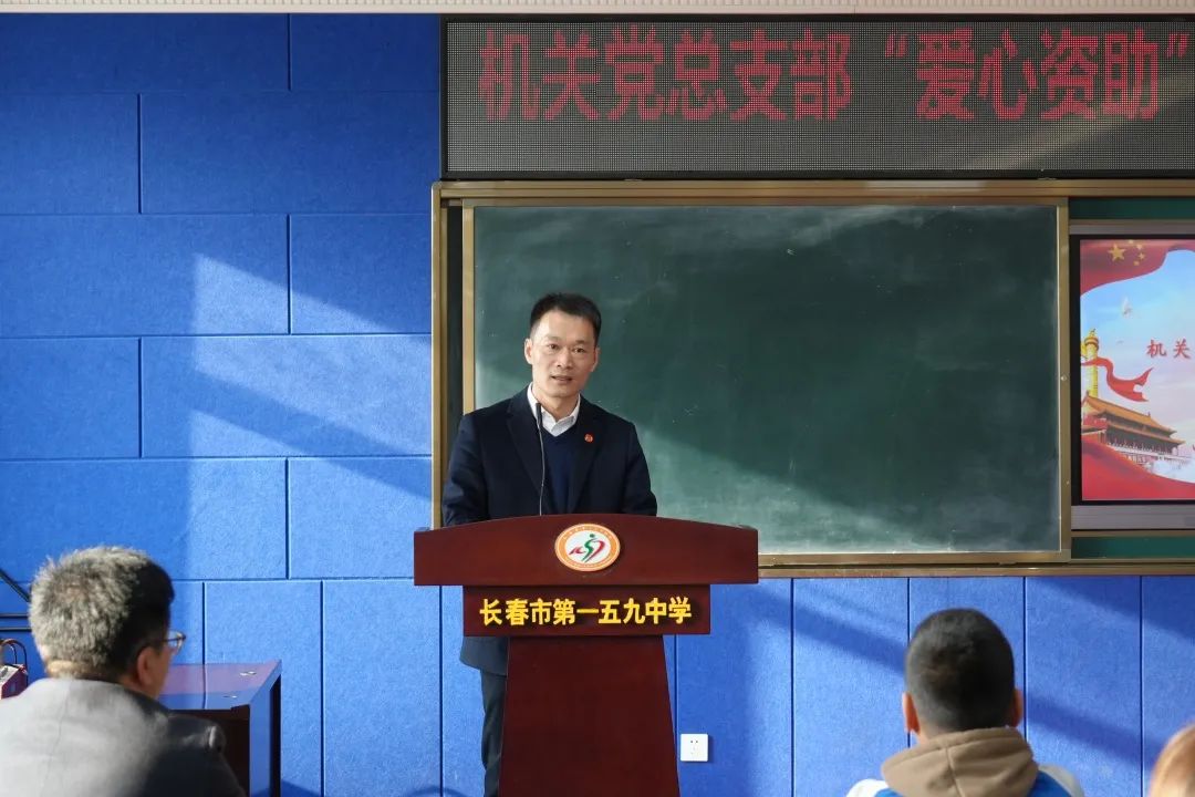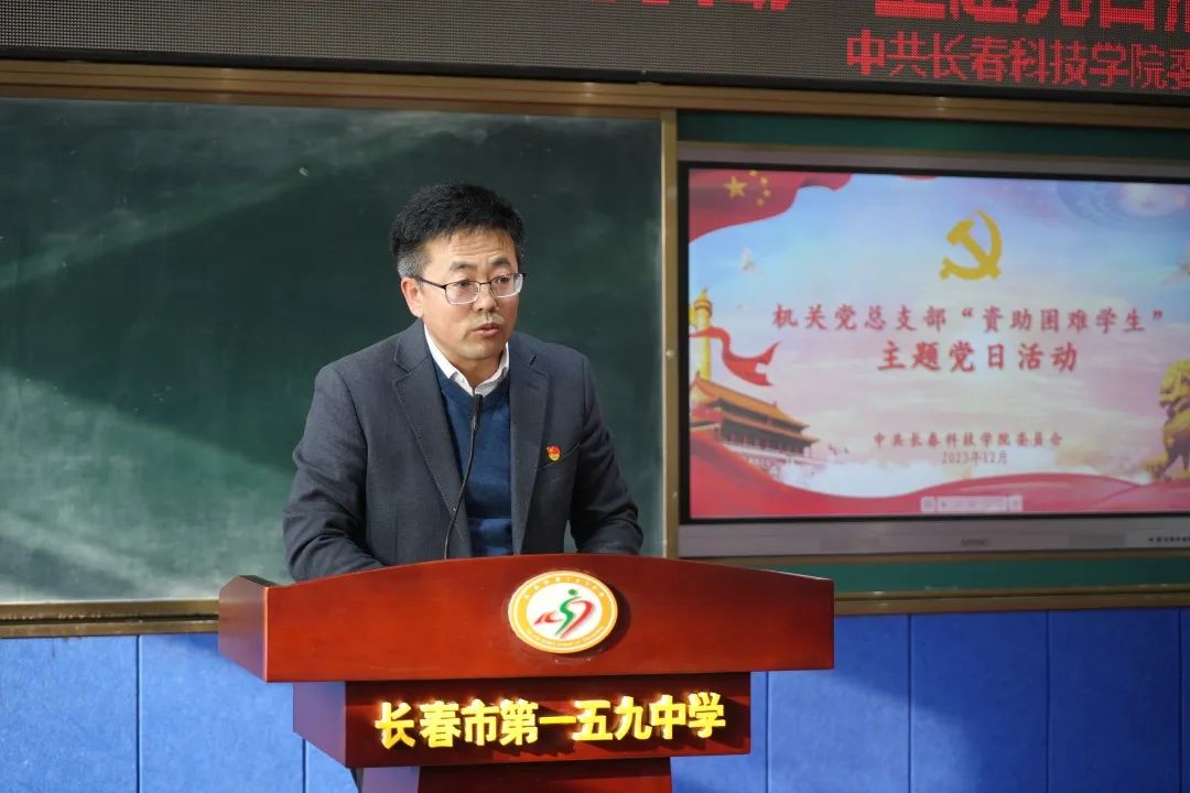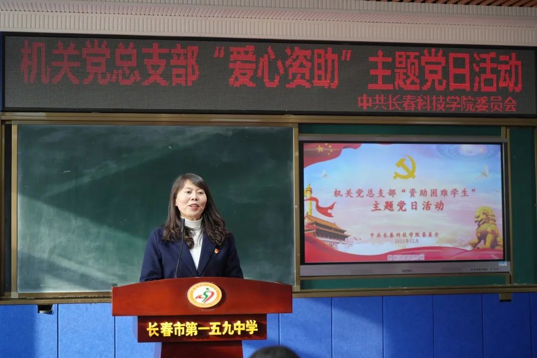 12月20日,机关党总支“资助困难学生”主题党日活动在长春市双阳区鹿乡镇中心小学三楼多媒体教室举办,双阳区鹿乡镇中心小学党支部书记、校长贾东新同志及领导班子成员、受资助学生及其班主任,长春科技学院党委副书记宋学山、党委常委、党政办公室主任孙大伟、党委组织部副部长王微微、机关党总支书记王志刚及部分党支部书记、委员及党员参加了本次活动,活动由鹿乡镇中心小学副校长李彩萍主持。