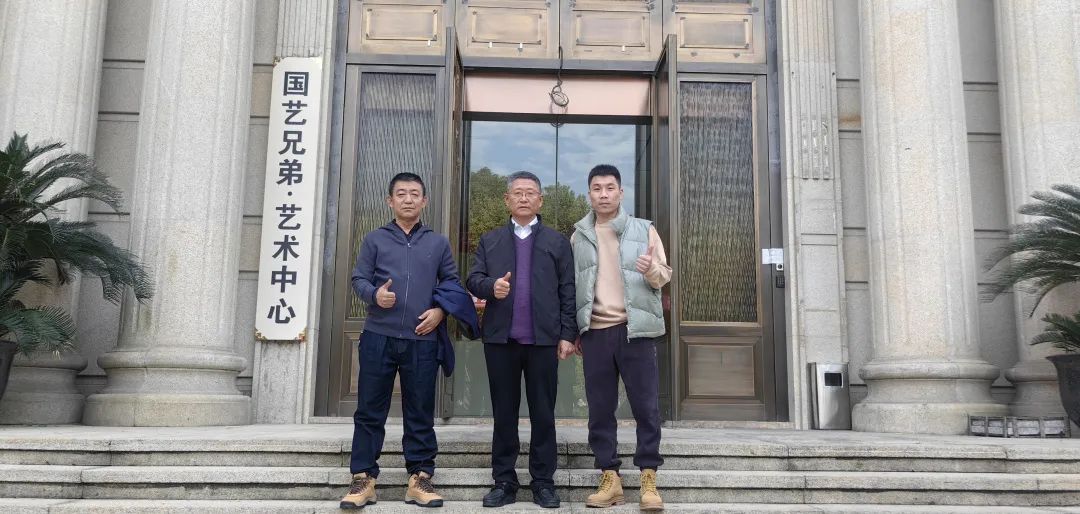 长春科技学院校长栾立明、视觉艺术学院院长李文成与国艺兄弟艺术中心俞琦超校长合影