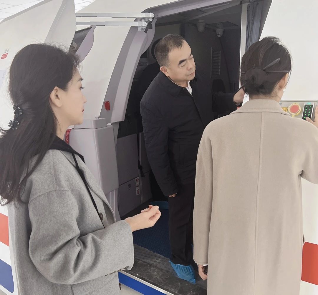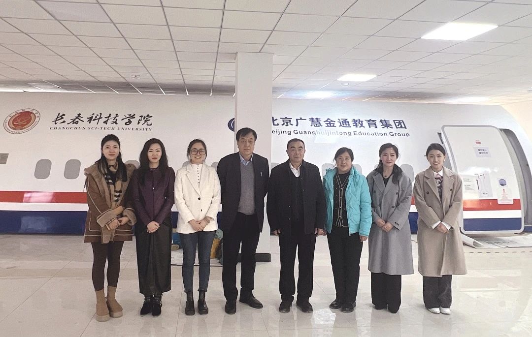 宣讲会后,长春科技学院董事长张电达、长春科技学院校长张代治、经济与管理学院院长王晓光、北京广慧金通教育集团就业管理部副总经理谈鑫、王盼盼主管、黑龙江吉林区域总经理邱静在长春科技学院工作处主任李羿的带领下参观了北京广慧金通教育集团为长春科技学院学生新提供的教学道具飞机模拟舱,并在模拟舱里针对学院空乘专业就业情况进行充分的分析和交流探讨。学校领导对驻校工作处团队在日常管理、教学工作及学生管理等方面做出的努力、成果给予了高度肯定和赞许。校企双方表示今后将各自发挥优势,培育民航人才,推动行业发展,继续深化校企合作关系,实现专业共建共赢。