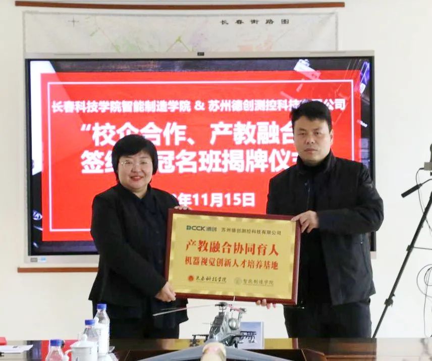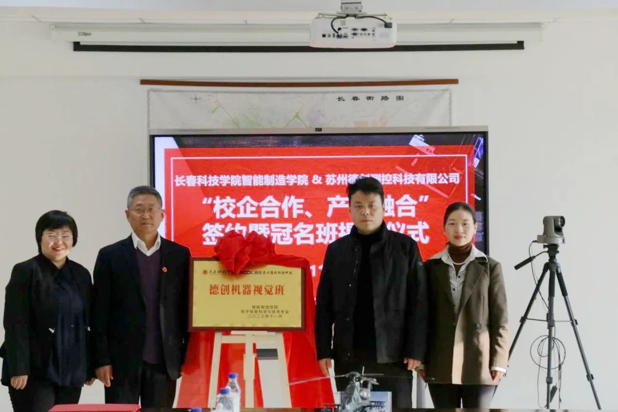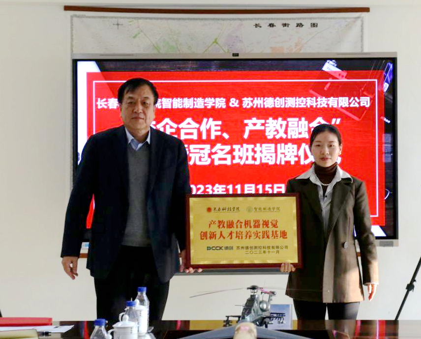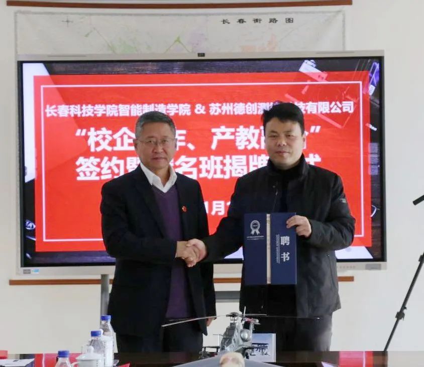 实施校企合作,促进产教融合,是应用型、创新型、复合型人才培养的必然要求。本着充分发挥校企双方优势,互惠双赢、共同发展的原则,促进校企深度合作,使教育和产业融合式发展。2023年11月15日,由长春科技学院智能制造学院与苏州德创测控科技有限公司共同举办的“校企合作 产教融合”签约暨冠名班揭牌仪式在长春科技学院行政楼903会议室顺利召开。