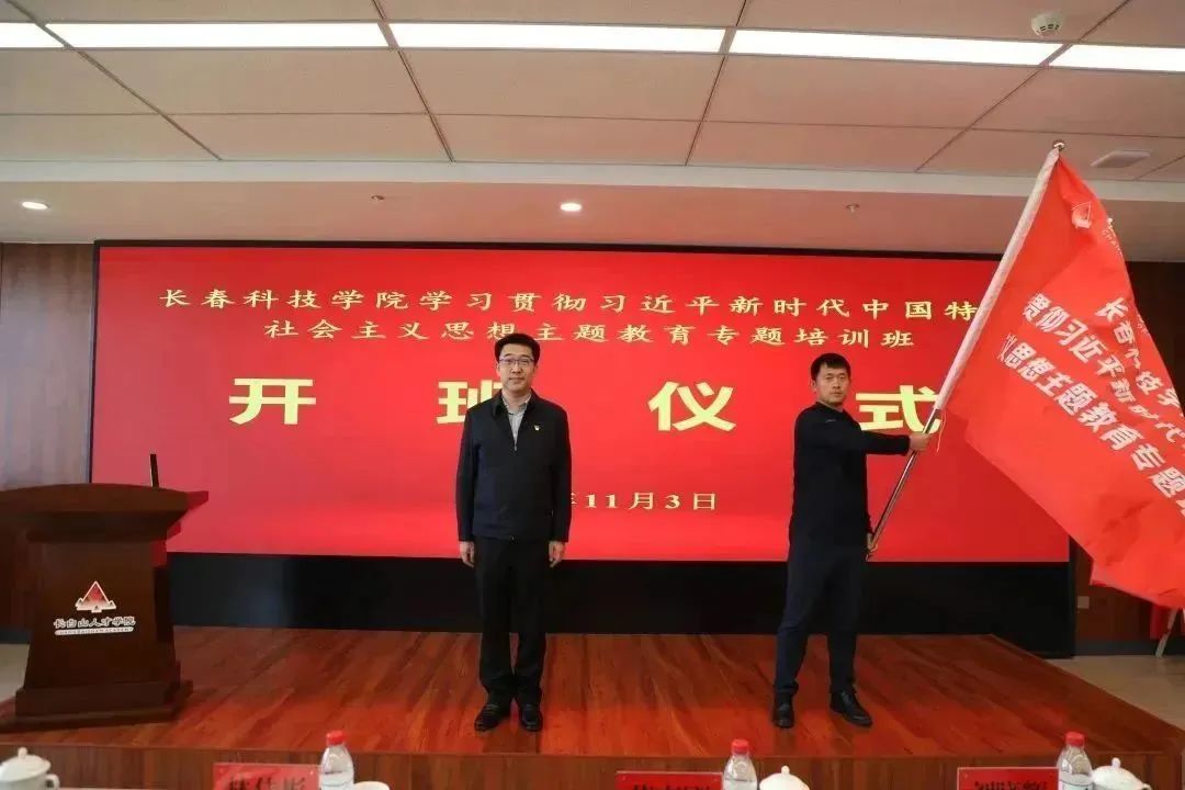 开班仪式上,党委书记林佳彬向学员武强授班旗。长白山人才学院副院长苑克刚致辞,表示将充分借助长科各方优势,推动双方开展全方位务实合作,加强双方交流,密切工作联系,增强优势互补,实现共建共享共赢,奋力开创人才教育培养新局面。校党委副书记高芳作动员讲话。她指出,举办此次专题培训班是贯彻落实《长春科技学院学习贯彻习近平新时代中国特色社会主义思想主题教育的实施方案》举措之一,是统一思想,凝聚共识,引导全校各级党员干部高质量开展好主题教育,持续推动习近平新时代中国特色社会主义思想学习贯彻往深处走、往实处走、往心里走实际行动。党政办公室主任孙大伟代表全体学员作表态发言,表示坚持在深学深悟中永葆忠诚底色,切实把习近平新时代中国特色社会主义思想转化为坚定理想、指导实践、推动长科工作的强大力量。