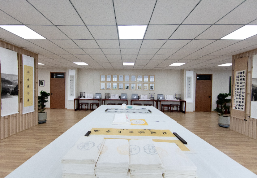 调研团一行重点走访了由语言文化学院·新媒体学院负责建设的长春科技学院语言文字推广基地。基地位于第一教学楼1313室,基地有五大功能区:一是硬笔书法区,二是软笔书法区,三是书画展示区,四是新媒体推广区,五是现场体验区。陈院长向调研团汇报了基地建设情况,硬笔书法吴琳琳老师、软笔书法孙剑锋老师、新媒体传播白永星老师分别介绍了区域功能运行情况。张电达董事长对基地建设高度赞扬,提出三点意见:一要提高站位。语言文字推广基地是长春科技学院语言文字事业高质量发展的重要窗口,要突出问题导向、目标导向、效果导向,主动把语言文字事业融入学校事业发展大局中。二要求真务实。以基地为载体,带动全校师生开展语言文字推广活动。三要创新发展。借助新媒体平台和多语种优势,传播传承中华优秀传统文化,打造具有长春科技学院特色的语言文字推广品牌。此外,基地还专门配备了智能触控一体机,师生可以现场体验“中国语言文字数字博物馆”。