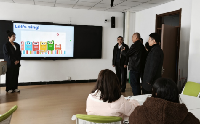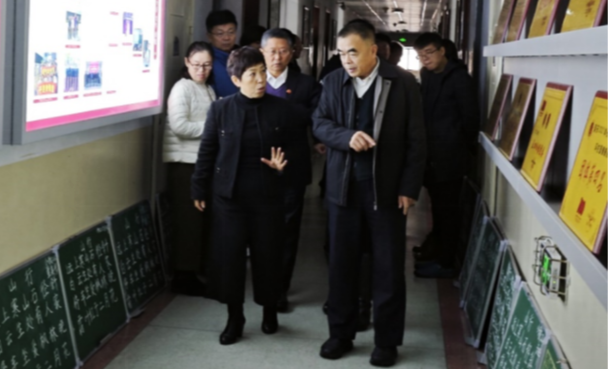 董事长张电达、校长栾立明一行先后走访了学院文化走廊,观摩课堂教学,走访学校语言文字推广基地,听取了语言文化学院·新媒体学院工作汇报。