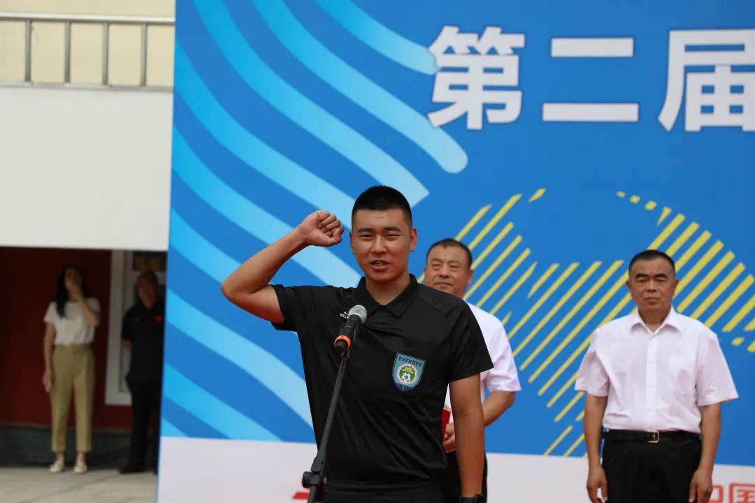 开幕式结束后,乔岱虎、牟大鹏、李晓杰、曲春雨一起走入绿茵场为赛事开球。