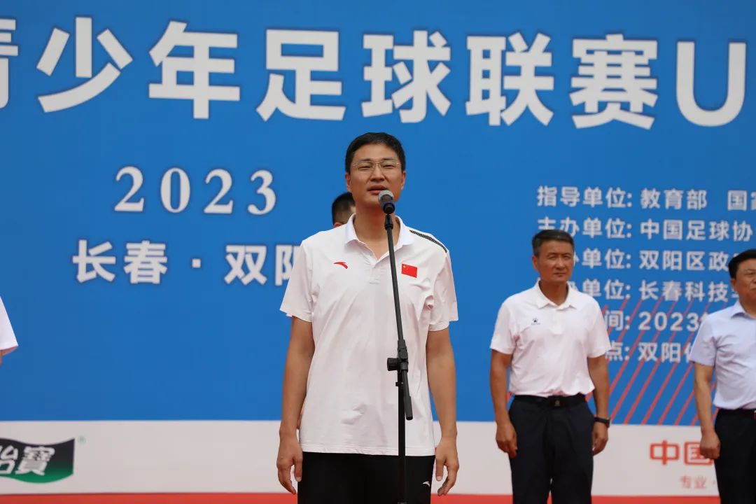“全体起立,奏唱国歌!”在雄壮的国歌声中,开幕式正式开始。首先,曲春雨致辞。他代表双阳区委、区政府,向出席开幕式领导、代表队表示热烈的欢迎!他表示,近年来,双阳区认真贯彻落实习近平总书记“树立健康第一的教育理念”重要指示精神,深入践行“健康中国”“体育强区”战略,深化体教融合、体卫融合、体旅融合,不断加大投入和建设力度,体育基础设施日趋完善,群众体育活动蓬勃发展,竞技体育水平日益提升。他指出,本届U13中国青少年足球联赛的举办对推动青少年足球运动发展、提升青少年体质健康水平起到有力促进作用,对双阳打造康养新城、实现文旅融合、掀起体育运动新热潮注入强劲动力。