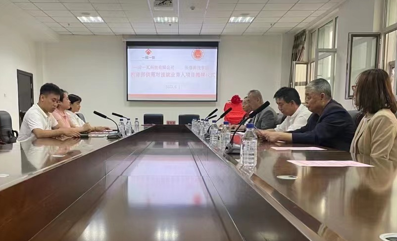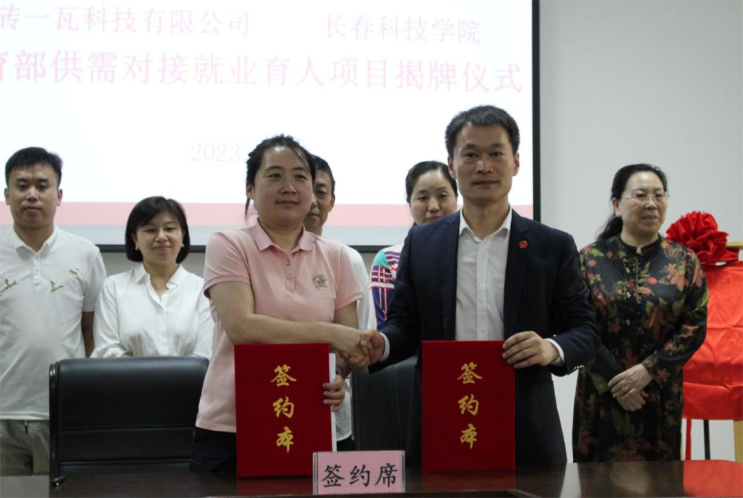 2023年6月1日下午,长春科技学院与一砖一瓦科技有限公司教育部供需对接就业育人项目签约揭牌仪式会议在行政楼403会议室顺利举行。我校党委副书记宋学山、就业处处长于斌,视觉艺术学院院长李文成、副院长崔岩、就业处校企合作办主任肖东飞及学院相关负责教师,一砖一瓦科技有限公司东北区高校经理王金凤、吉林省高校经理姚力、长春分公司总经理徐岩参加了此次签约揭牌仪式。仪式由于斌处长主持。