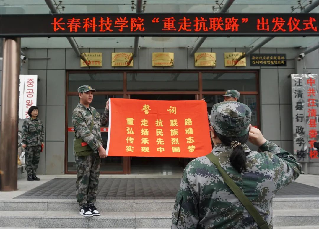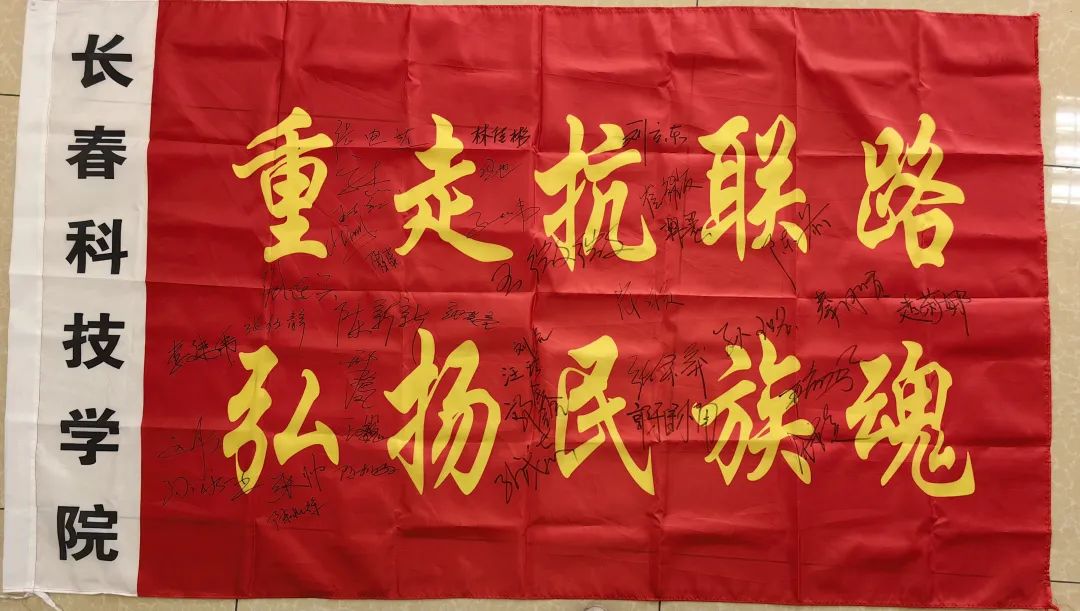 活动最后全体学员在长春科技学院“重走抗联路 弘扬民族魂”旗帜上签名。