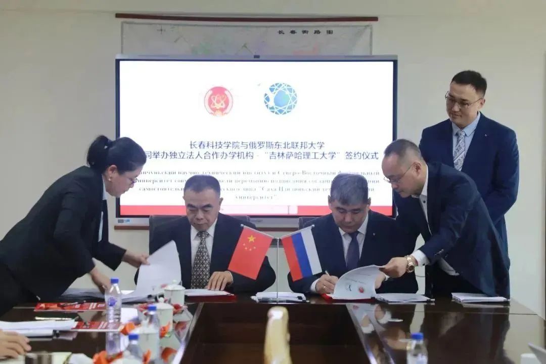 在友好气氛中,张电达、尼古拉耶夫•阿纳托利•尼古拉耶维奇分别代表双方就联合建立 “吉林萨哈理工大学”事宜签署合作协议。