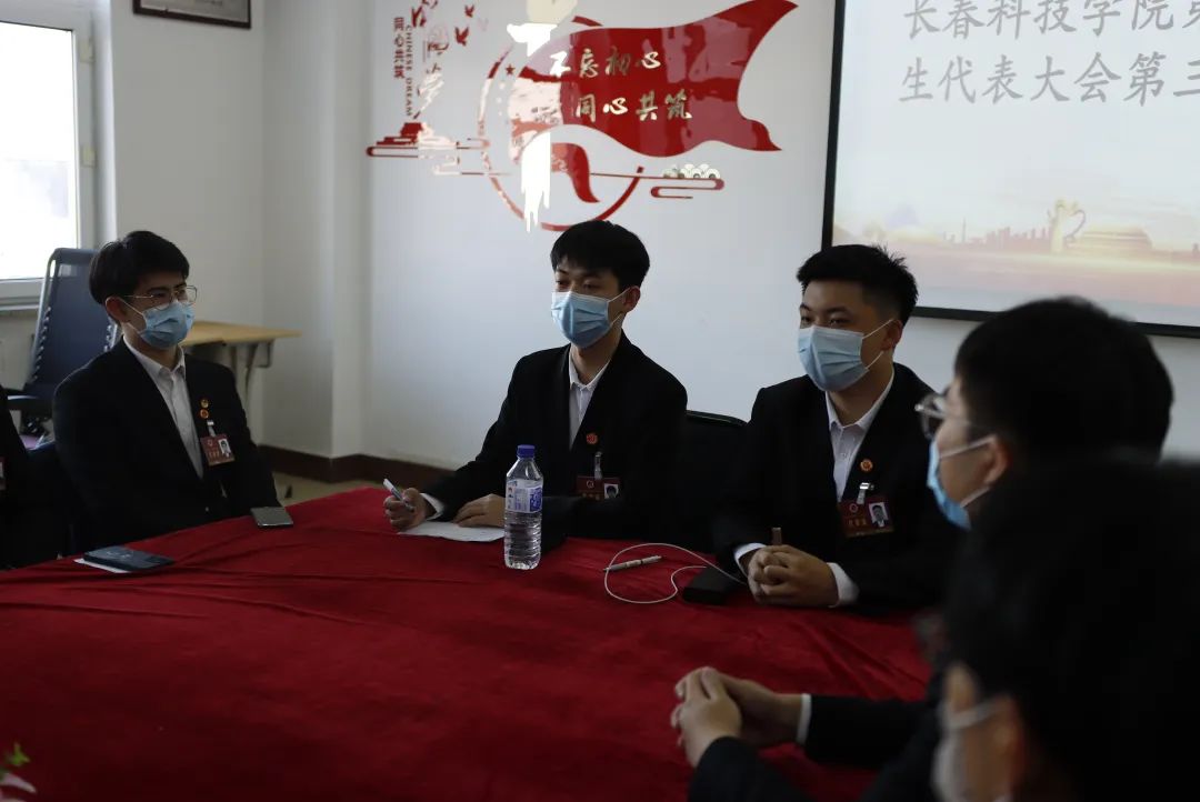 第一次全体会议上,庞婉君同学代表学生会作了题为《履行青春使命,砥砺担当作为,学习二十大,永远跟党走,带领全校学生为实现第二个百年目标团结奋斗》的学生会组织工作报告。王春阳同学作了提案工作报告。宛情同学做了大会听取、审议《长春科技学院第二课堂成绩评定细则》的报告。