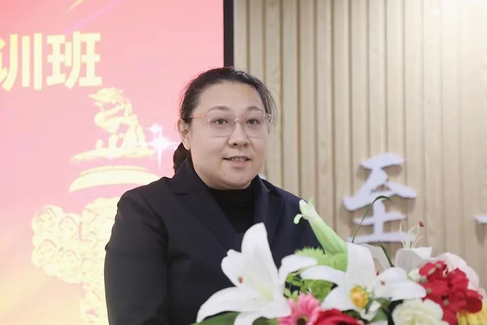 培训班临时党支部书记王微微同志代表临时党支部和全体学员发言,她感谢学校、领导给予青干班全体学员这样一个难得的培训机会,她表示作为组织上信任的一批人,全体学员必将 踔厉奋发、勇毅前行,为长春科技学院发展建设贡献自己的力量。