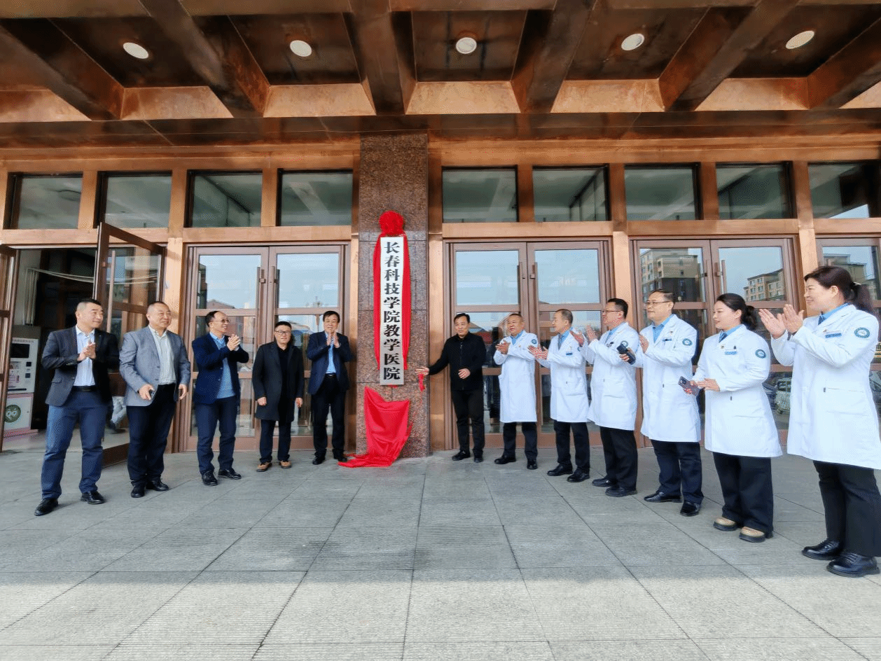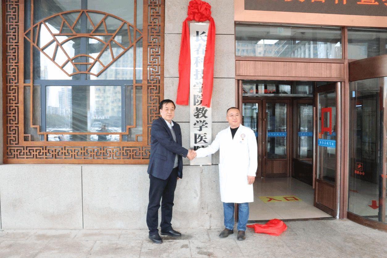 张代治副校长和磐石市中医院党支部书记于海涛共同为《长春科技学院教学医院》揭牌