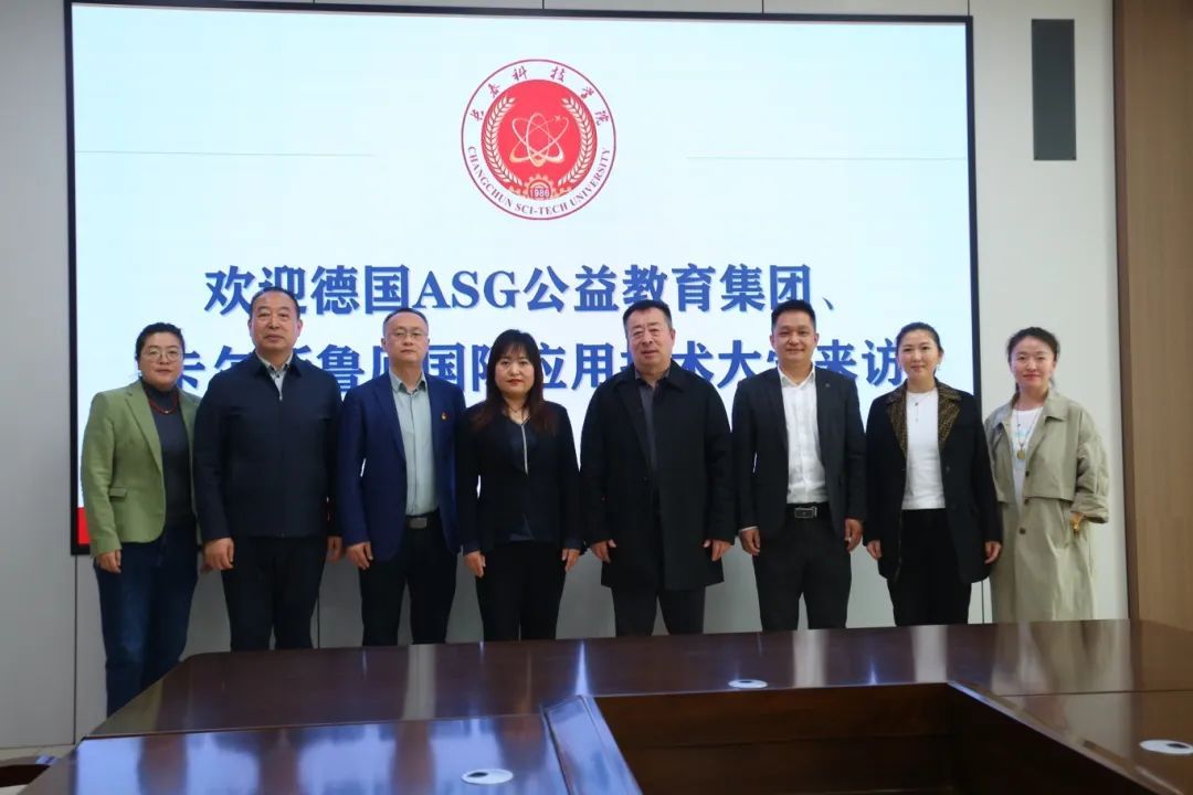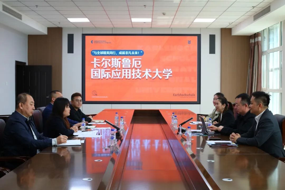 4月29日上午,德国 ASG 公益教育集团董事陈旭利、中欧产业促进基金会秘书长宁海涛、德国卡尔斯鲁厄国际应用技术大学代表一行访问我校,围绕中德教育合作、双元制人才培养及学生赴德就业等议题深入交流,国际合作与交流处处长王志刚主持会议,副校长高杰、就业工作处处长于斌出席会议。