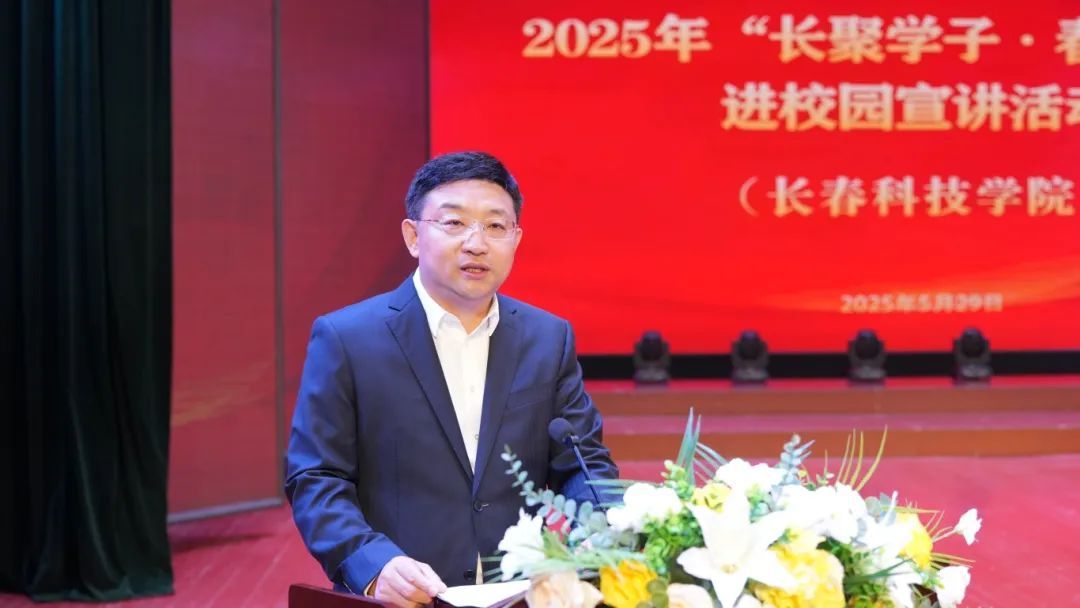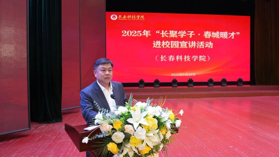 尊才崇智、举贤尚功。5月29日,2025年“长聚学子·春城暖才”进校园宣讲活动在长春科技学院东鳌学术论坛-国际会议中心举行。长春市委常委、市委秘书长朱光明作长春市人才政策推介宣讲,向广大长科学子发出诚挚邀约:希望同学们选择长春、创业长春、扎根长春。