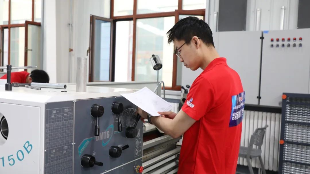 步入竞赛区,车刀铣刃精准游走,选手们凝神屏息,反复校验微米级的精度,确保每个尺寸都符合图纸要求。整个加工过程中,机床运行平稳,展现出精湛的技艺水平。